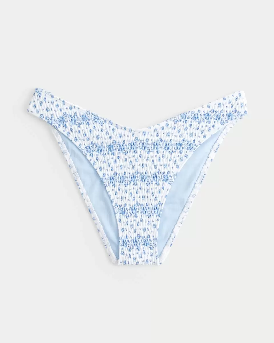 This super cute bikini bottom is designed with a high-leg silhouette, v-waist and cheeky coverage. Soft smocked swim fabric. Imported.