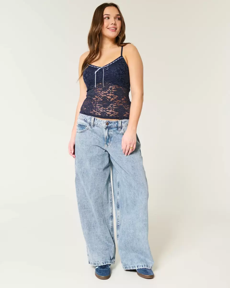 A pretty and super soft cami in all-over lace. Adjustable straps, v-neckline. Slim Fit.
