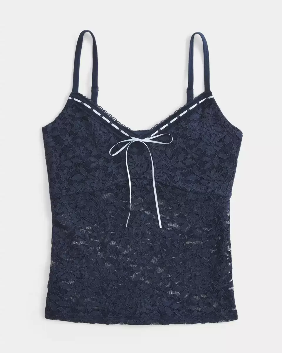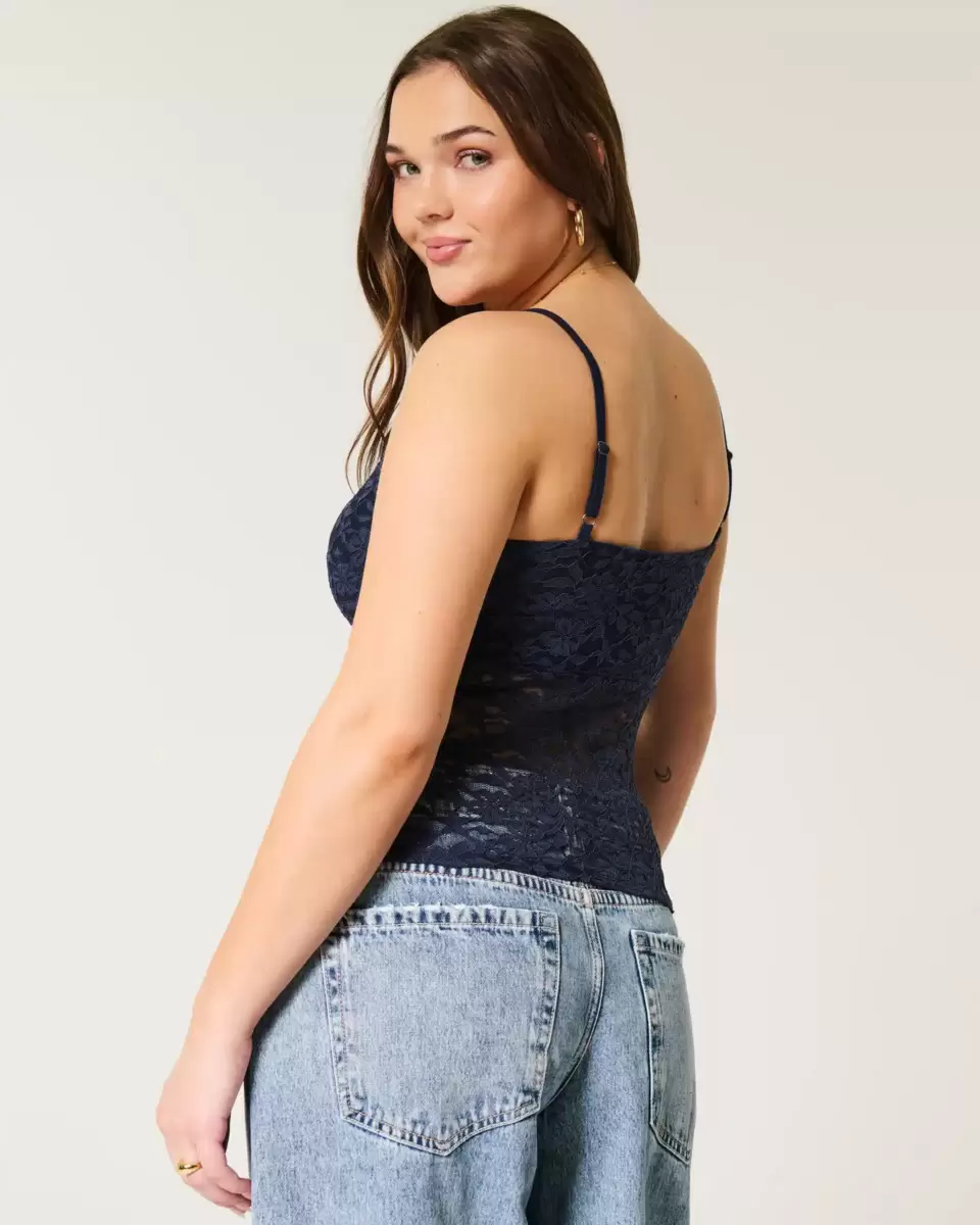 A pretty and super soft cami in all-over lace. Adjustable straps, v-neckline. Slim Fit. Imported.