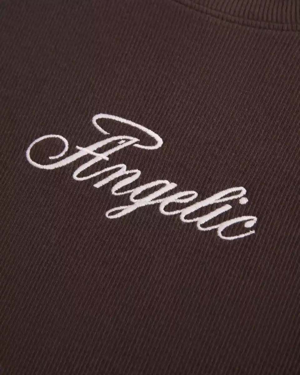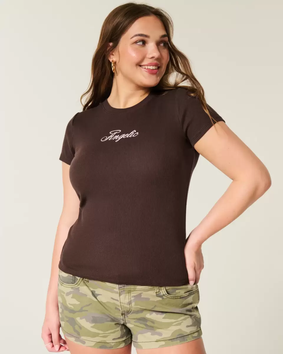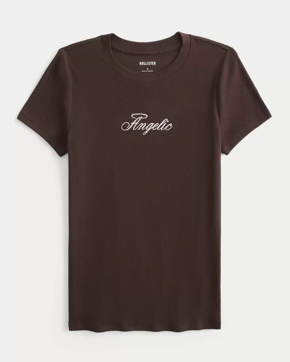 A super soft Y2K-inspired baby tee designed with a slightly shrunken silhouette, featuring Angelic graphic embroidery. Short sleeves, crew neckline, cozy ribbed fabric. Slim Fit. Imported.