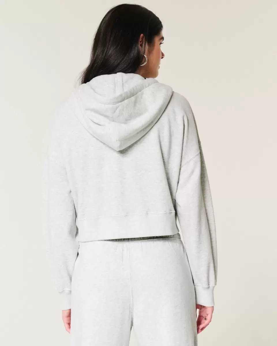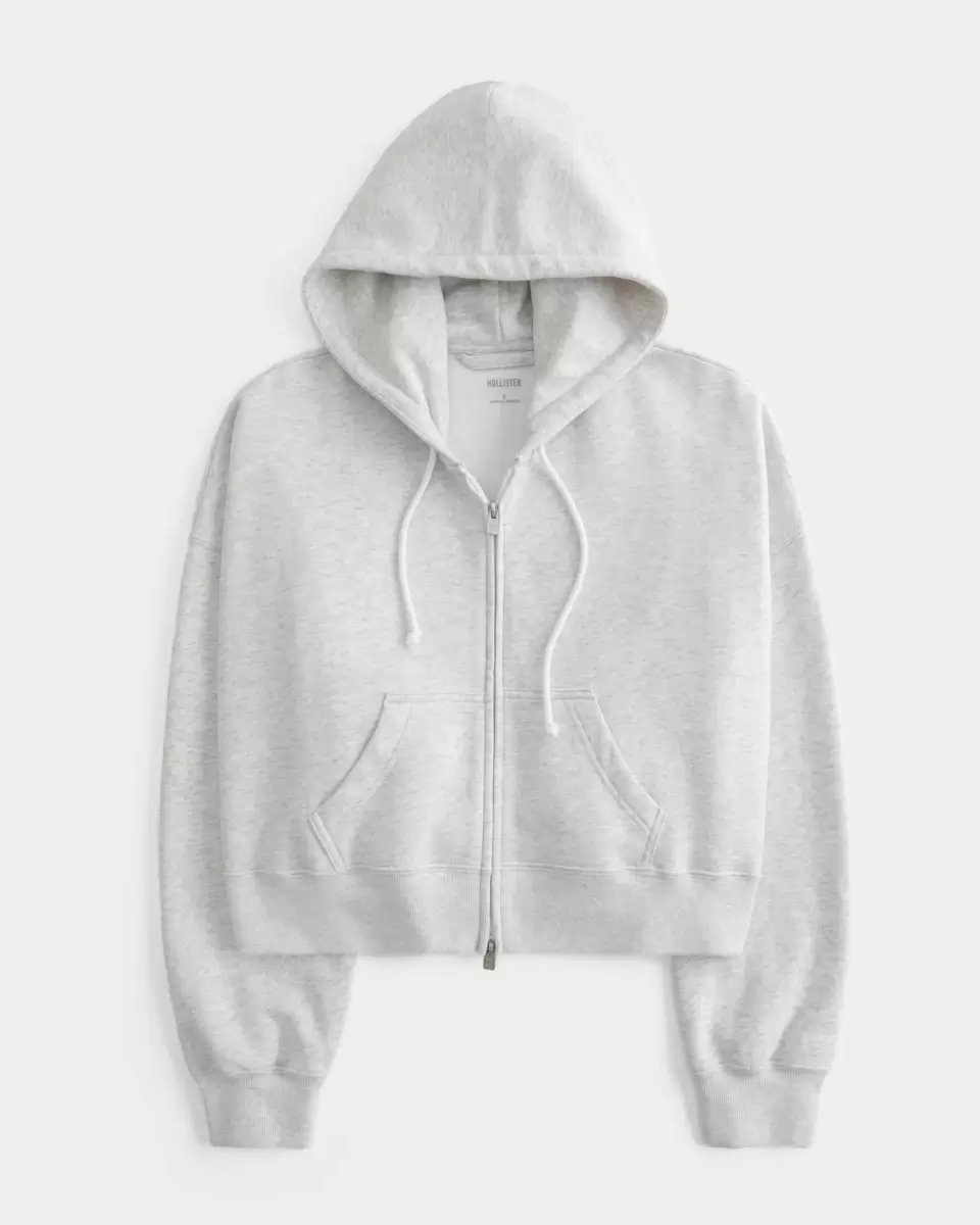 This super soft fleece hoodie features a full zip-up closure and drawstring hood. Front pockets, long sleeves. Boxy Fit.