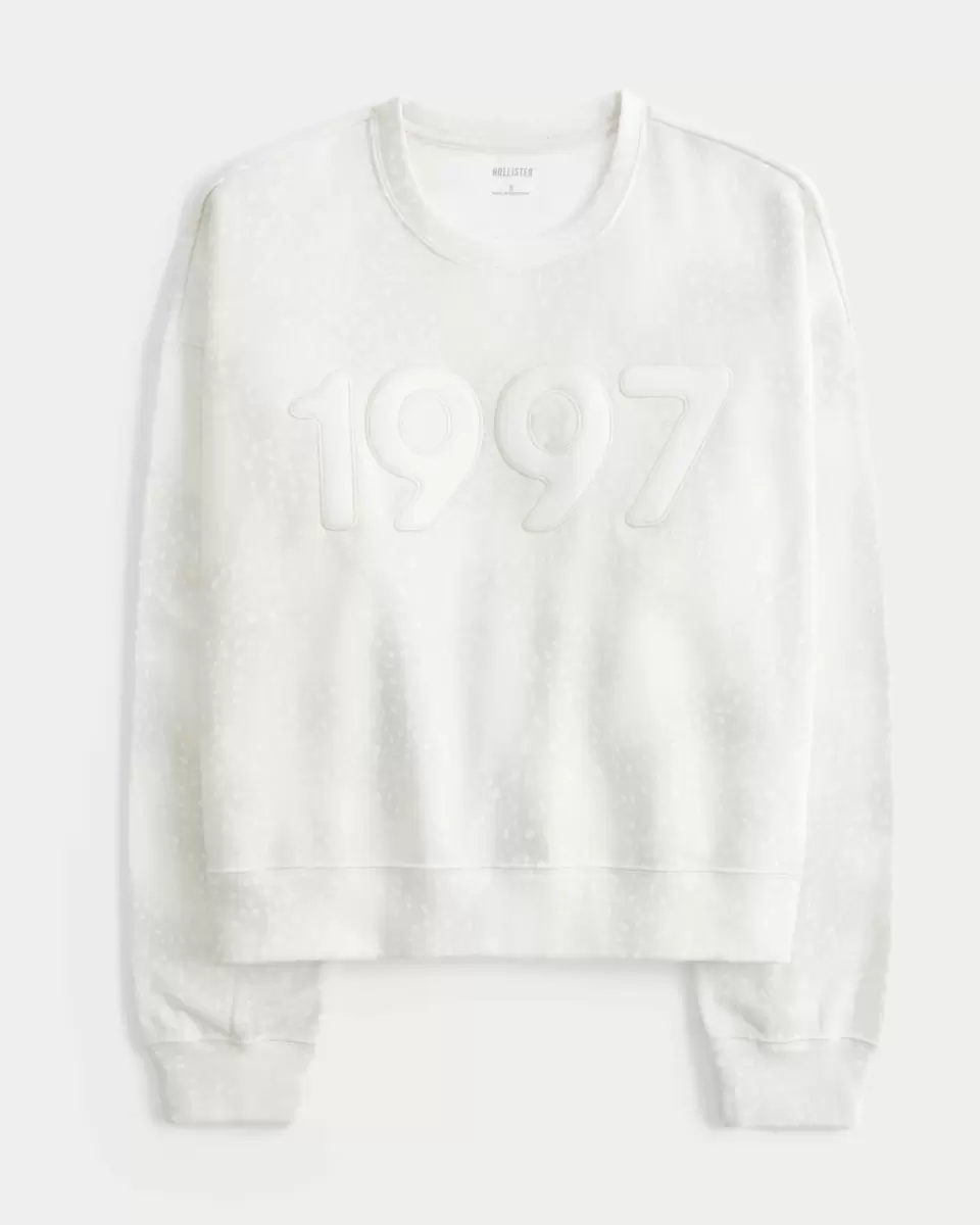This super soft fleece sweatshirt features 1997 graphic applique and an all-over light doe print. Crew neckline, long sleeves. Easy Fit.