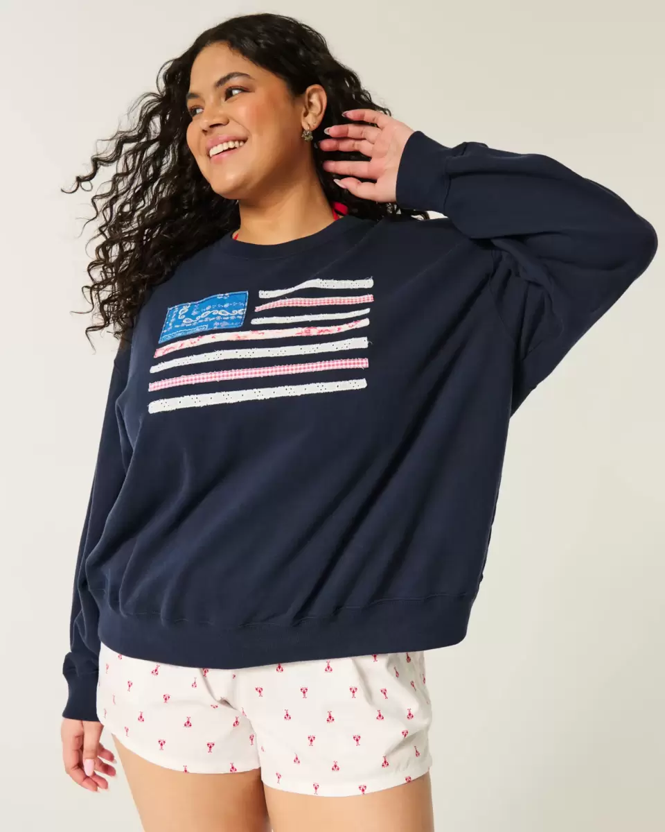 A super soft fleece sweatshirt featuring American Flag graphic applique. Crew neckline, long sleeves. Easy Fit. Imported.