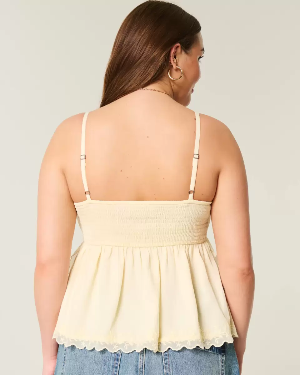 Made with super soft, flowy crinkle chiffon fabric, this babydoll top features ruffles and a tiered hem with embroidery. Button details, soft smocked back. Looks amazing dressed up or down! Imported.