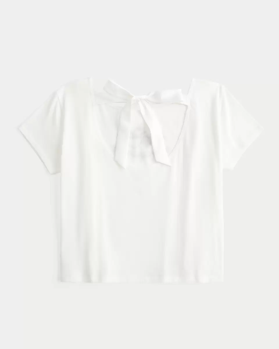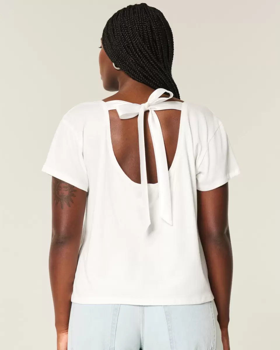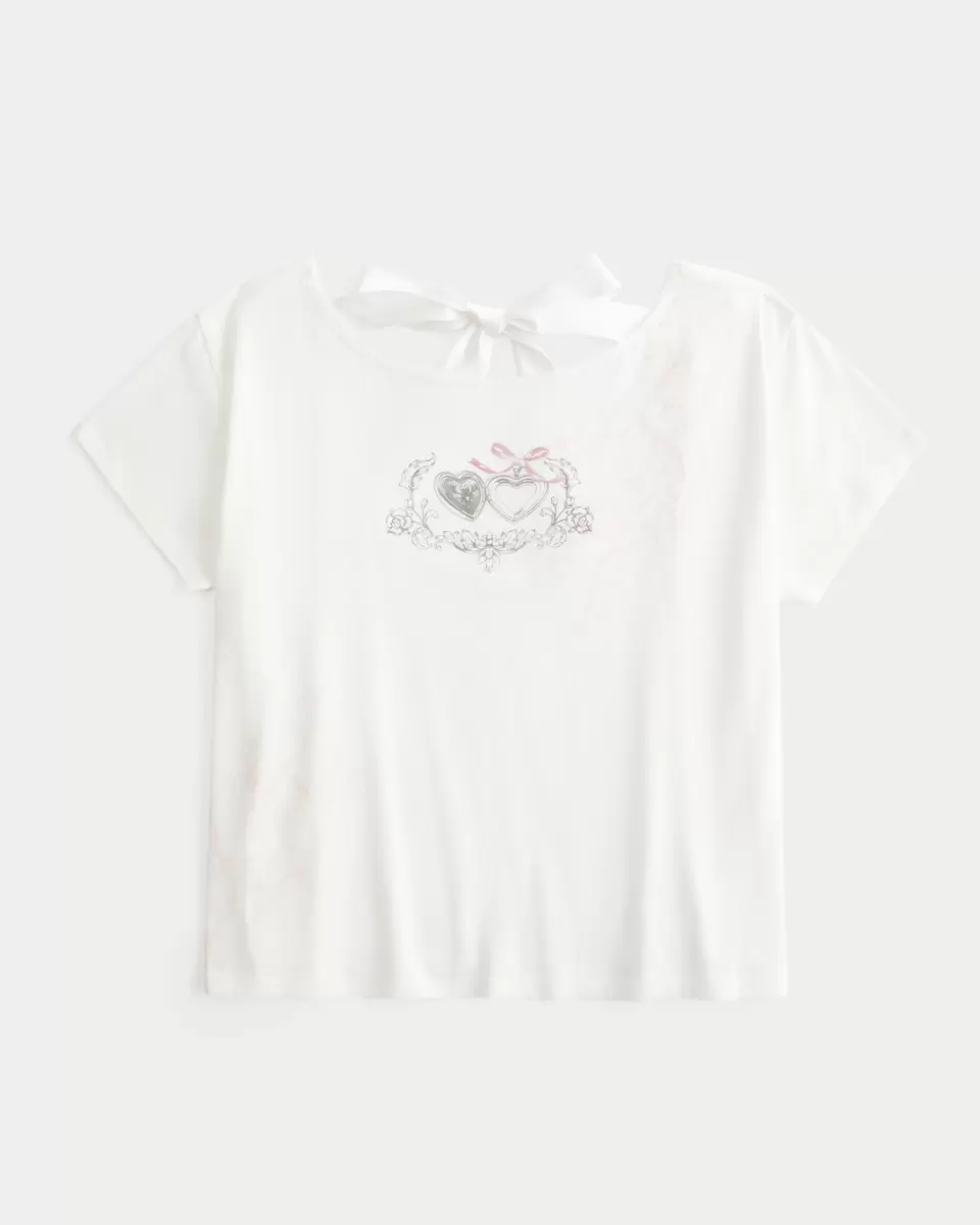 Cute and super soft, this tee features heart print graphics and a ribbon back tie detail. Short sleeves. Easy Fit. Imported.
