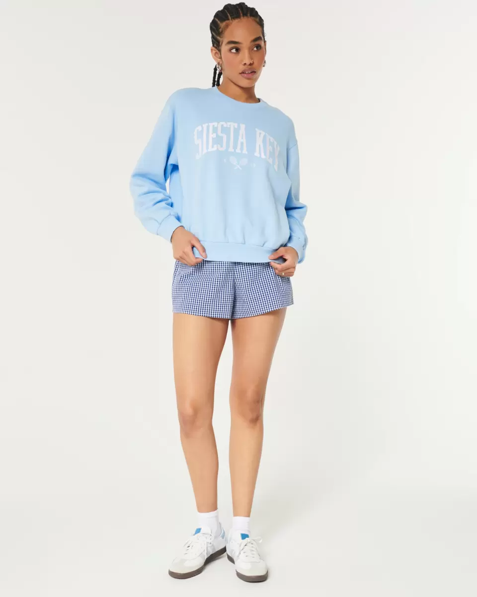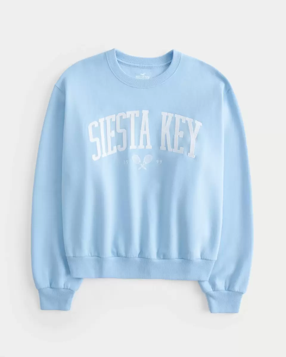 A super soft fleece sweatshirt featuring Siesta Key graphic applique and embroidery, a crew neckline and long sleeves. Easy Fit. Imported.