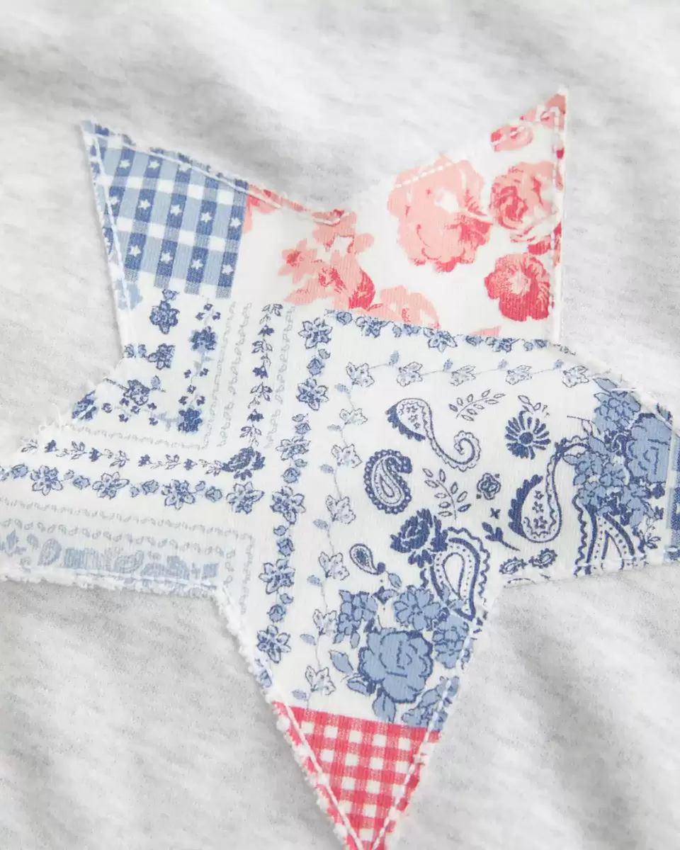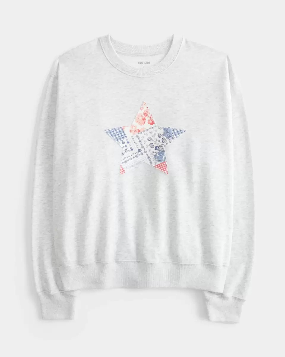 A super soft fleece sweatshirt featuring pattern-filled star graphic applique. Crew neckline, long sleeves. Easy Fit. Imported.