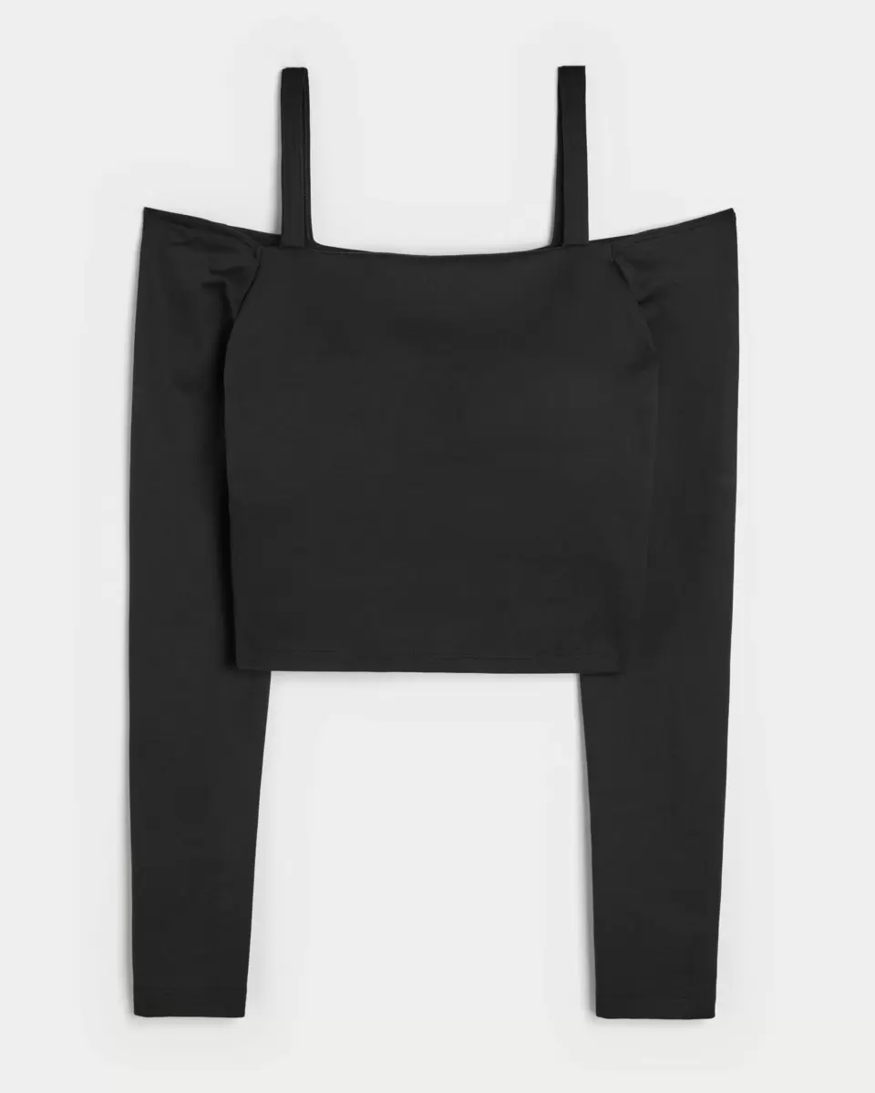 This super cute top is designed in our breathable, 4-way stretch, moisture-wicking Recharge fabric with a super soft, brushed feel. Off-the-shoulder neckline with thin shoulder straps, built-in shelf bra with removable pads. Long sleeves. Imported.