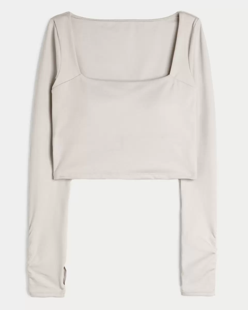 Designed in our breathable, 4-way stretch, moisture-wicking Recharge fabric with a super soft, brushed feel. This top features a square neckline and long sleeves with thumb openings. Imported.