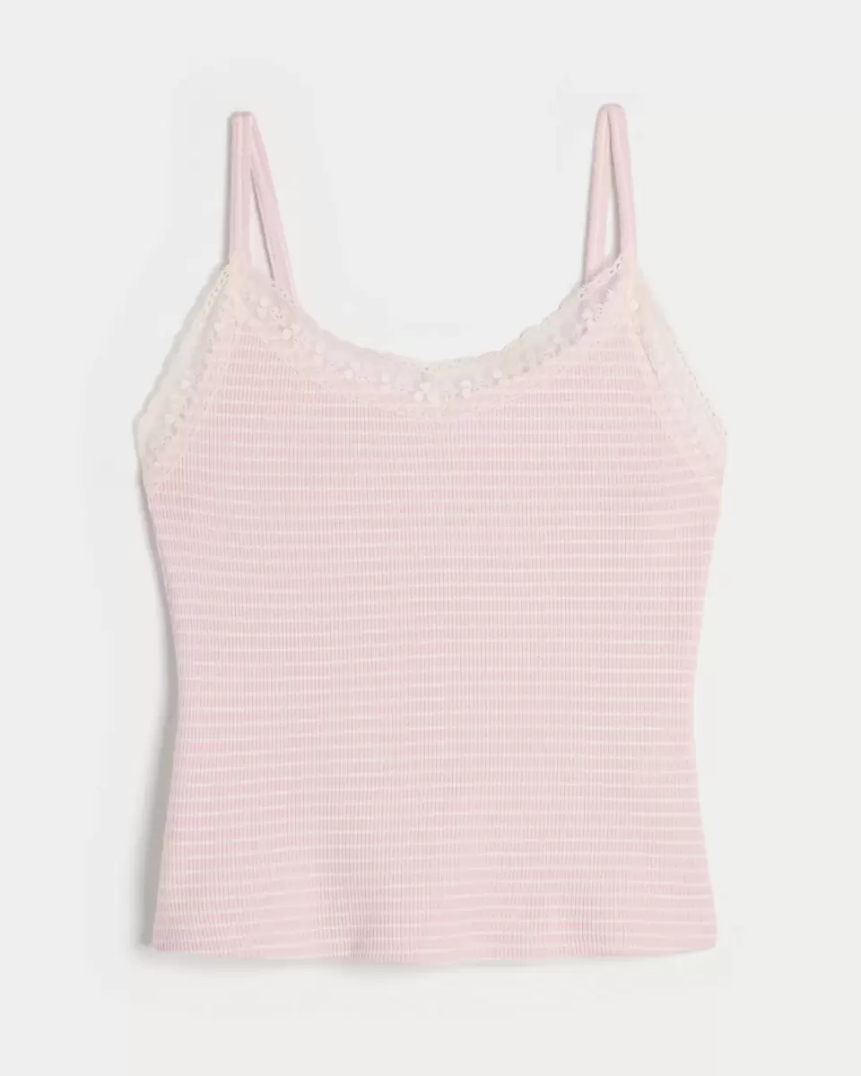 A super soft and comfy cami in waffle fabric, featuring pretty lace trim at the neckline. Imported.