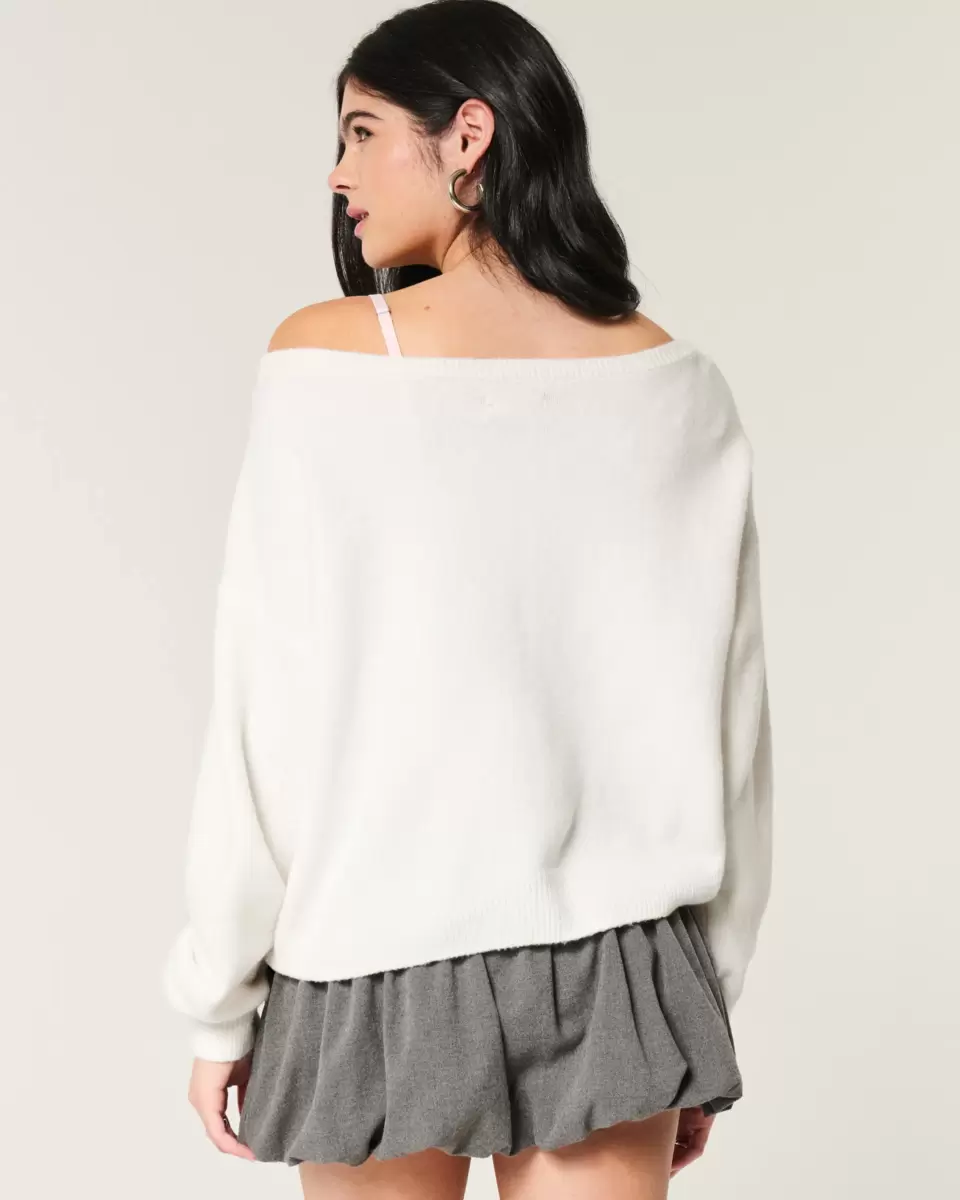 Hollister Comfy Cloud Easy Off-the-Shoulder Deer Graphic Sweater