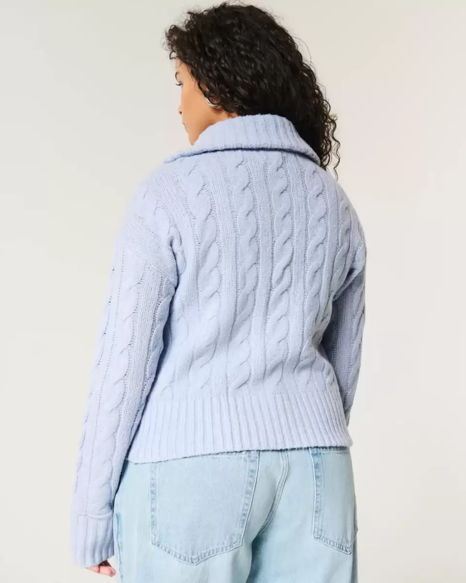 Made with our unbelievably soft Comfy Cloud knit fabric, this sweater features classic cable-knit patterns, a collar and two-way zipper closure. Ribbed trims, long sleeves. Easy Fit. Imported.