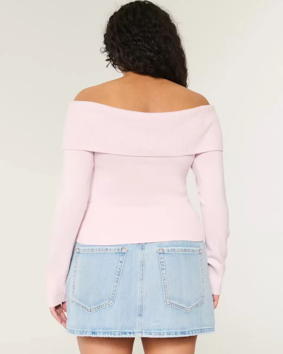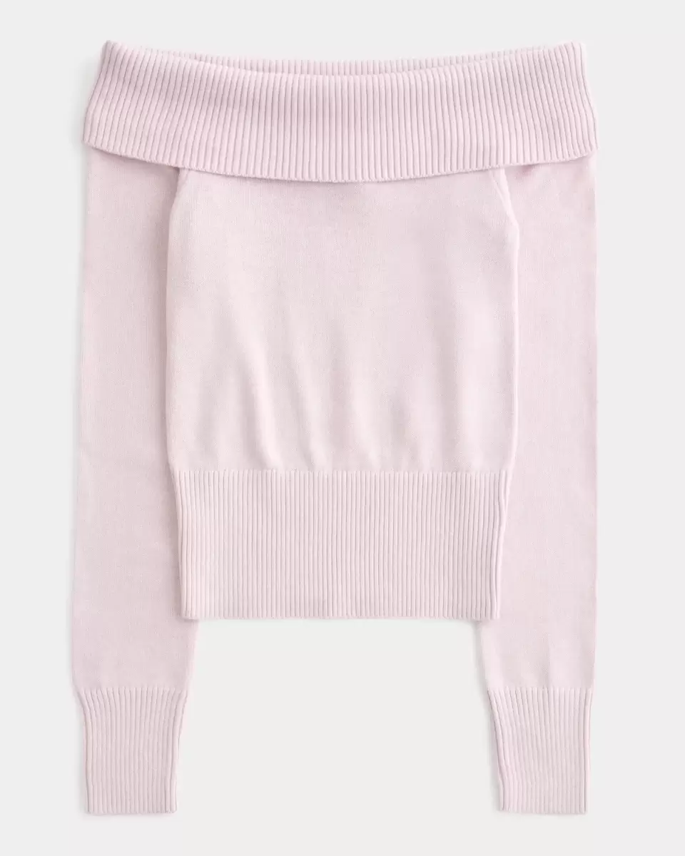A cozy and super soft sweater in a stretchy cotton blend. Foldover off-the-shoulder neckline, long sleeves, ribbed trims. Slim Fit. Imported.