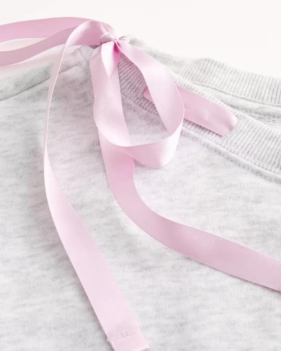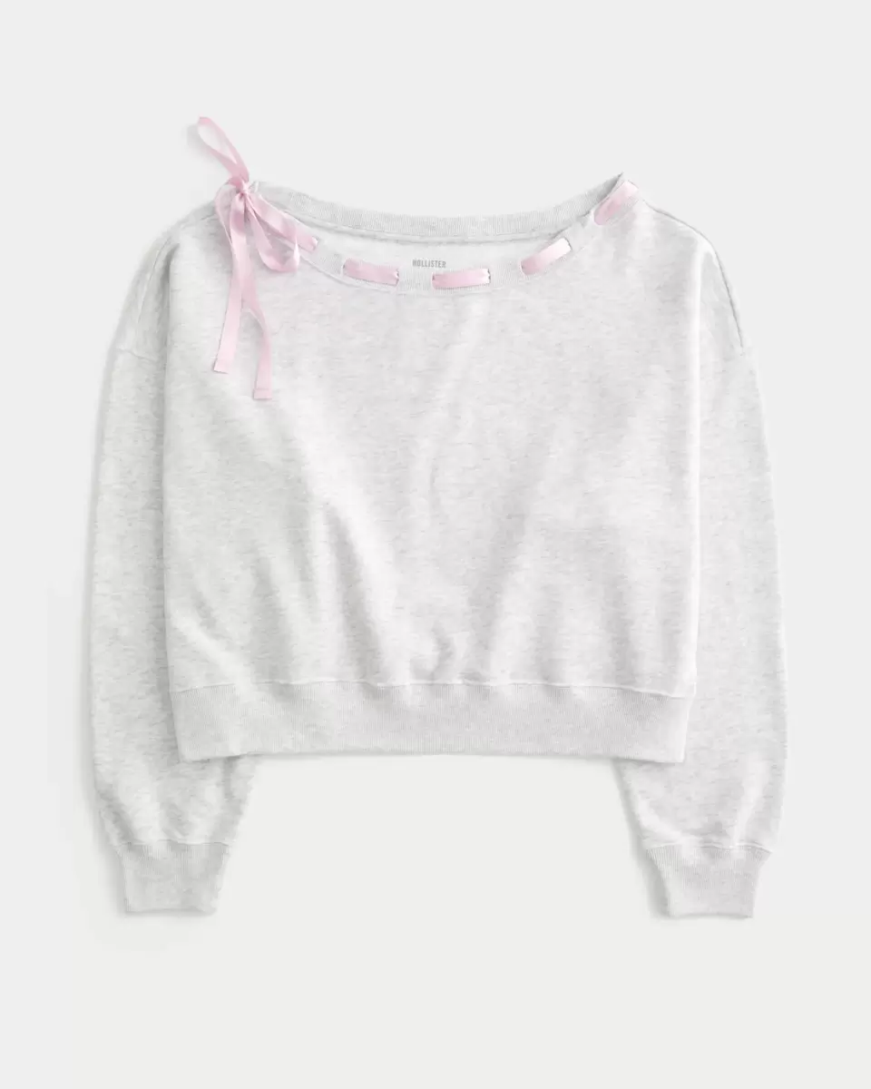 This super soft sweatshirt features an off-the-shoulder neckline with a pretty tie detail. Long sleeves.