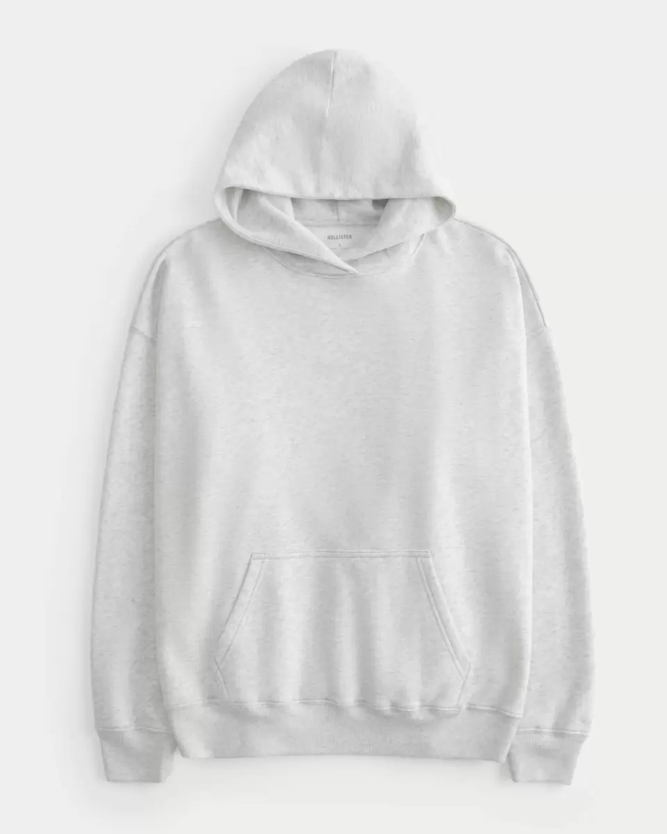 A super soft and cozy fleece hoodie with a front pouch pocket. Hood, long sleeves. Oversized Fit.