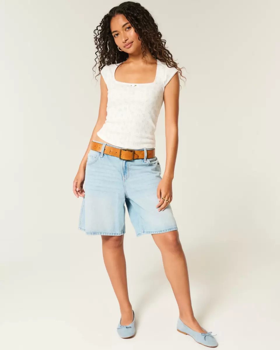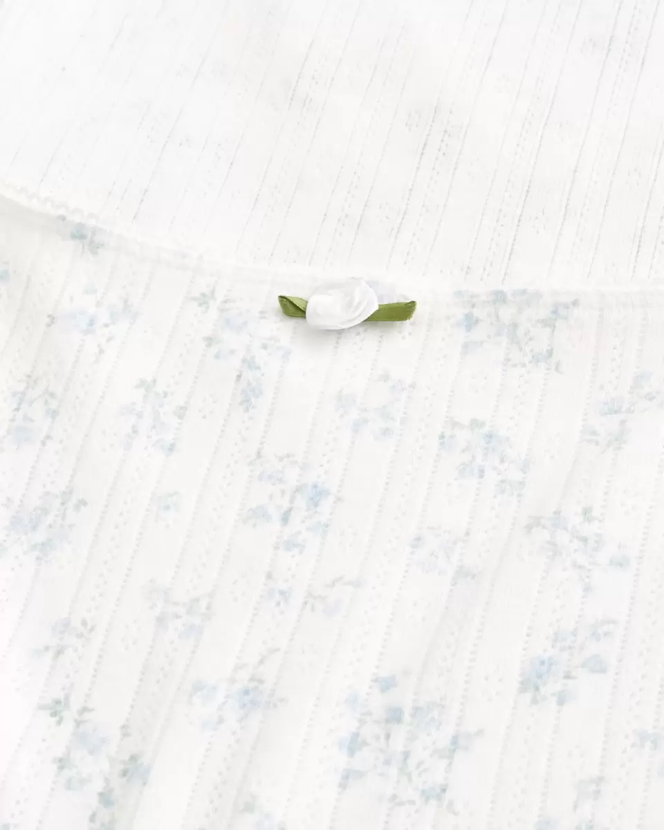 Your new fave top is made with super soft pointelle fabric and features a square neckline with a cute rosette detail at the center and picot trim. Slim Fit. Imported.