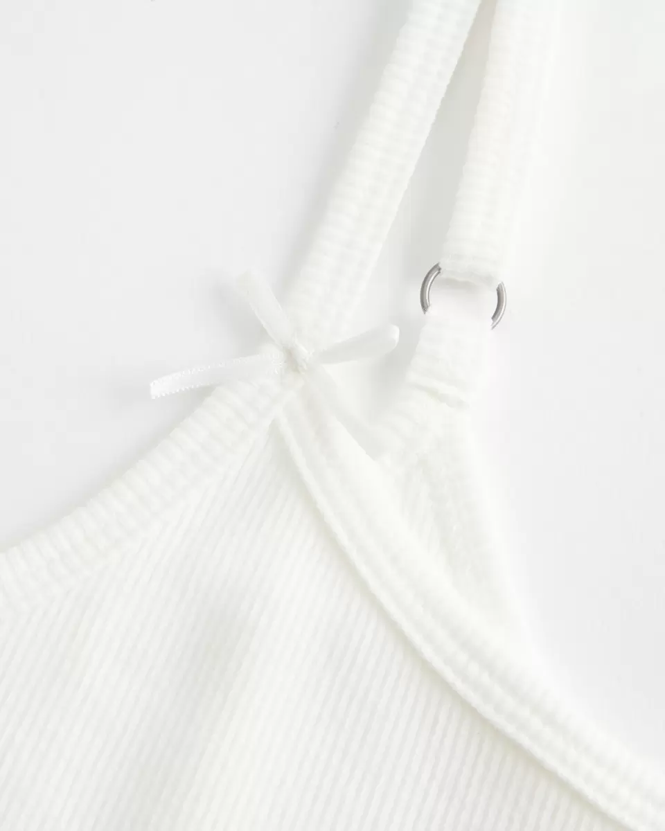 This cute cami is made with soft ribbed fabric and features a seahorse print graphic. Adjustable straps with pretty bow details. Slim Fit.