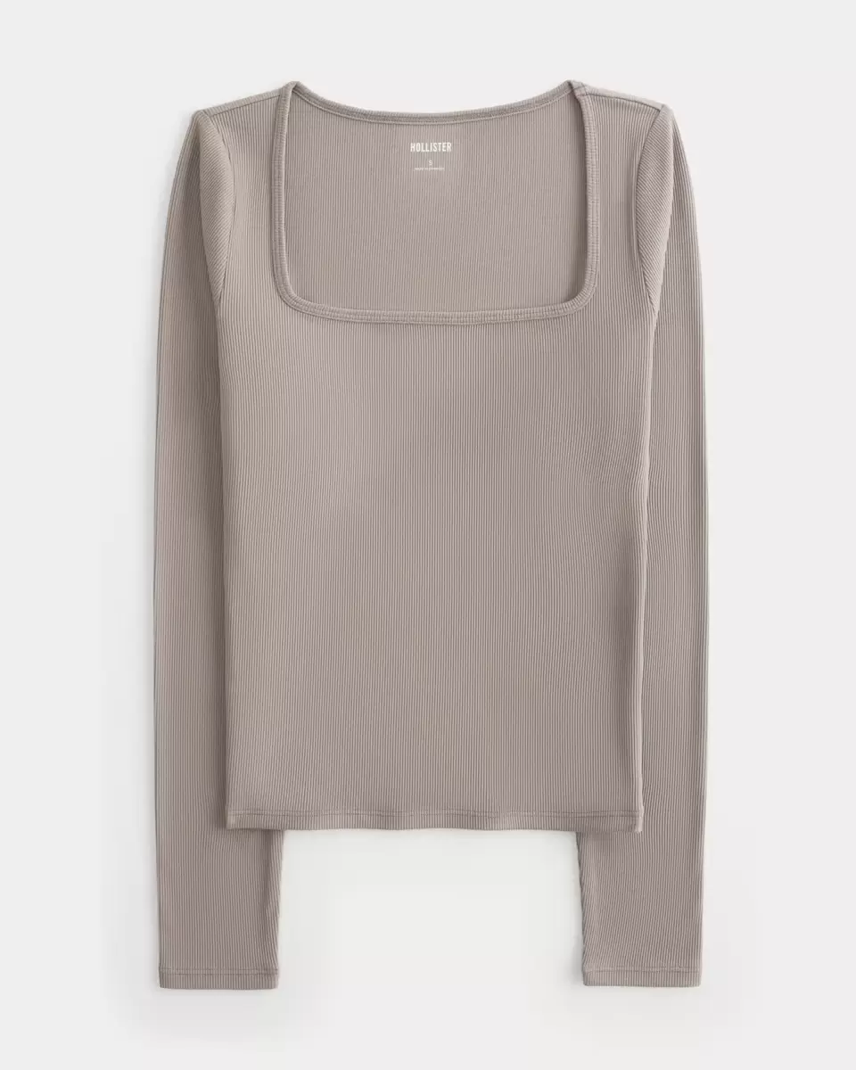 An ultra-soft and cozy long-sleeve top in ribbed fabric with a seamless look and feel. Square neckline, long sleeves. Slim Fit. Imported.
