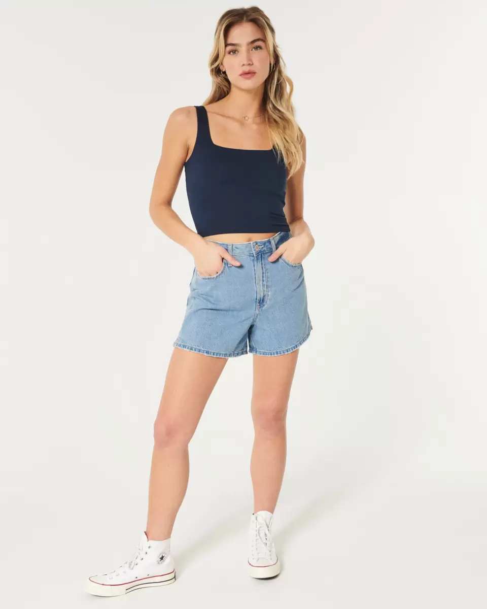 This cute tank is made with super soft fabric with a seamless look and feel. Square neckline, shelf bra, stretch. Slim Fit.