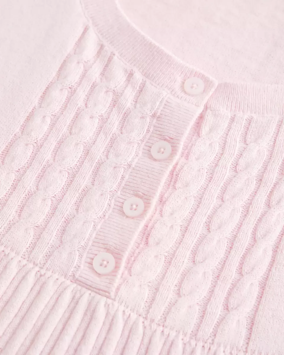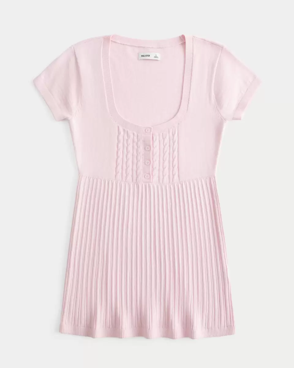 Perfect for layering with a cami or on its own, this cozy and super soft Y2K-inspired henley babydoll top features a flowy hem with ribbed texture, short sleeves and a button plack