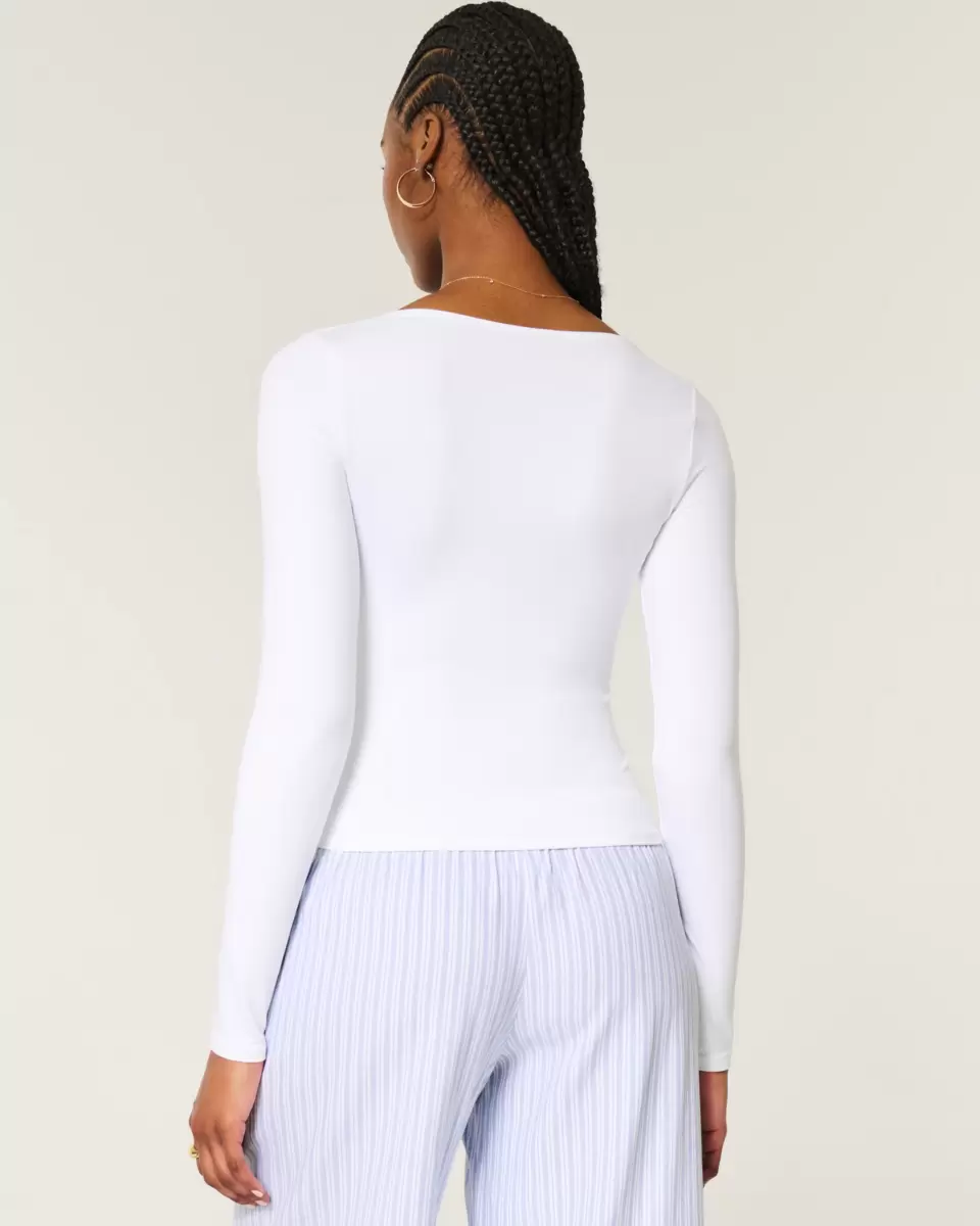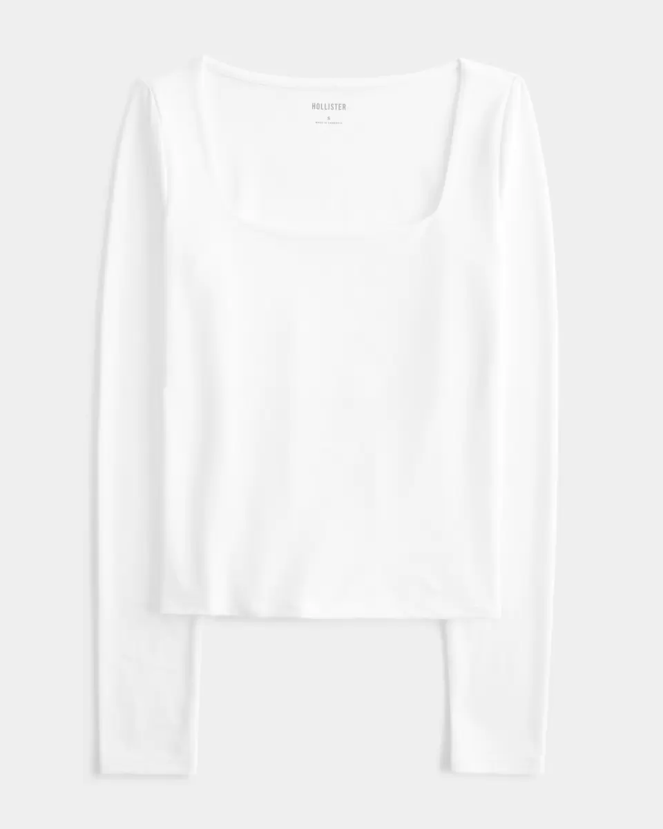 A cozy long-sleeve top in soft stretch fabric with a seamless look and feel. Square neckline, long sleeves. Slim Fit.