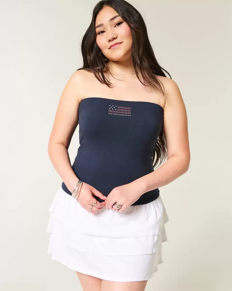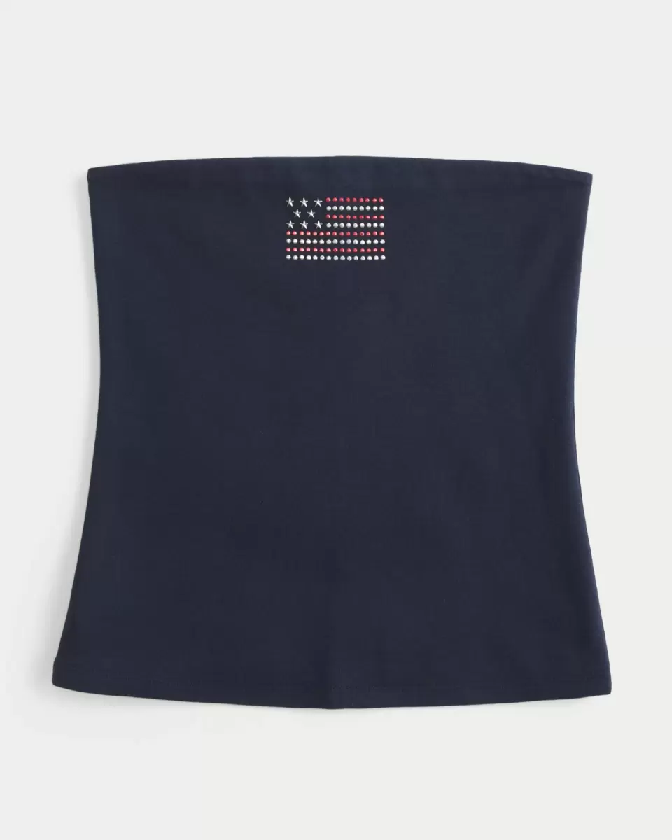 A super soft tube top featuring a cute American Flag graphic in shine details. Slim Fit.