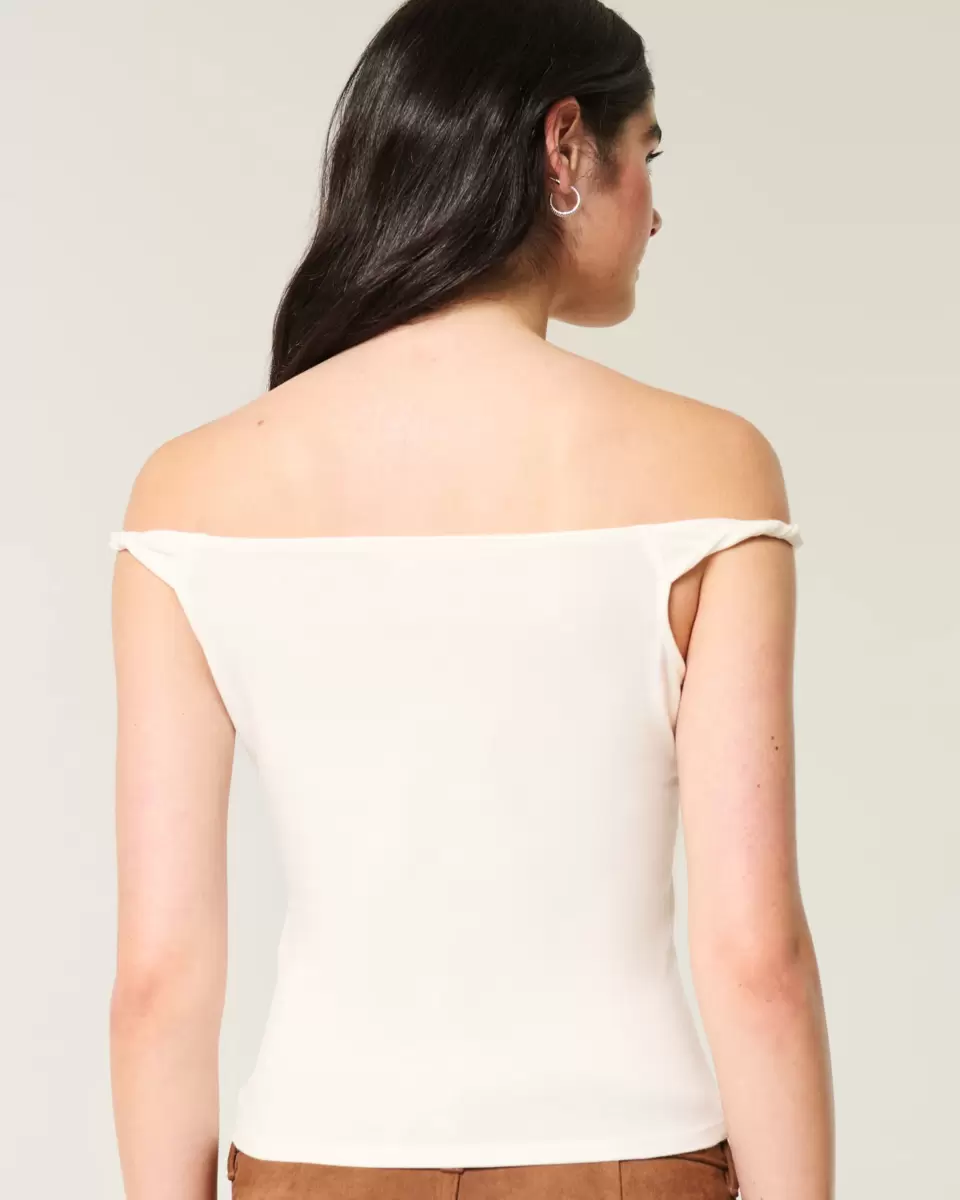Super soft and comfy, this trend drop tee features a vintage-inspired Velvet Valley US Tour print graphic and twisted off-the-shoulder neckline. Slim Fit. Imported.