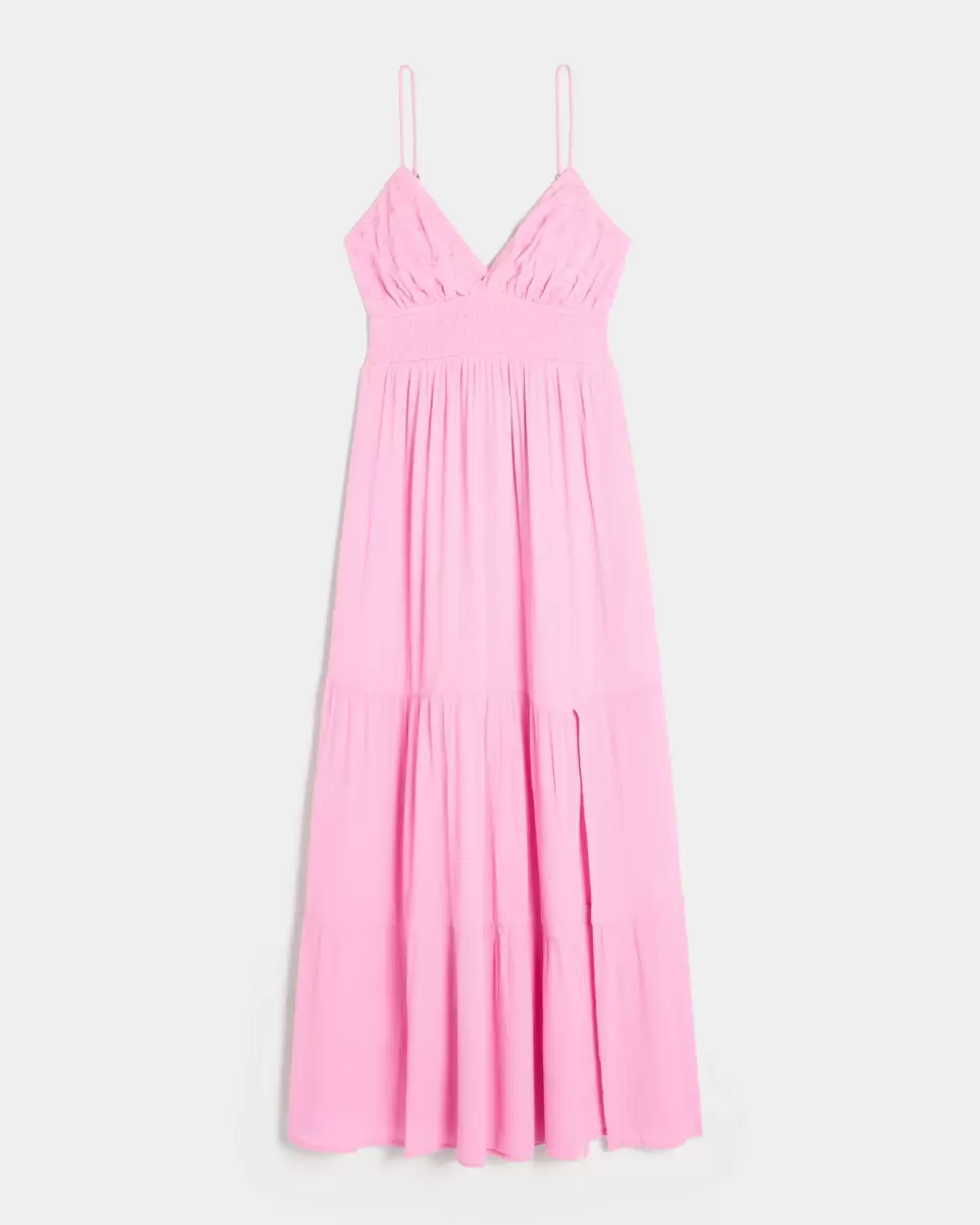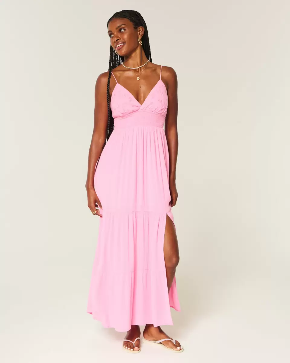 This pretty and super soft maxi-length dress features embroidered details at the bust. Split hem detail, adjustable straps, soft smocked waist.