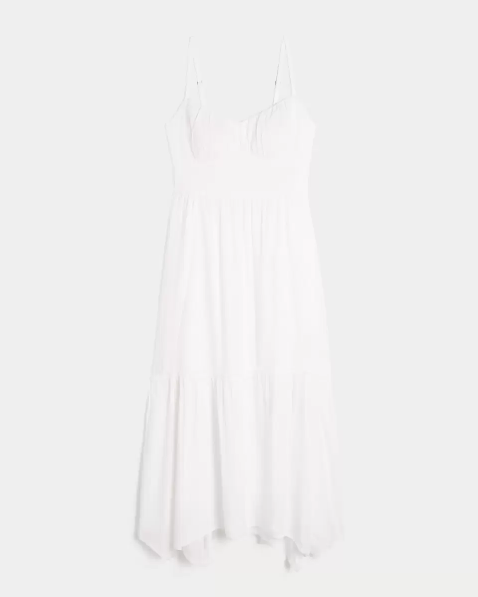 Flowy and super soft, this maxi-length dress features pretty clip dot textured fabric. Adjustable straps. Imported.