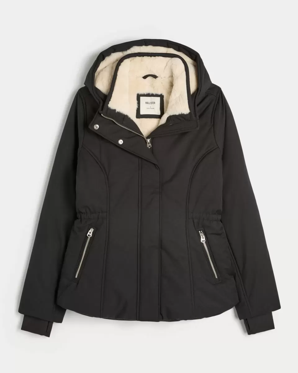 Your new favorite jacket features super soft faux fur lining, a full zip-up closure with snaps and front zipper pockets. Hood, storm cuffs with thumb openings, interior pocket.