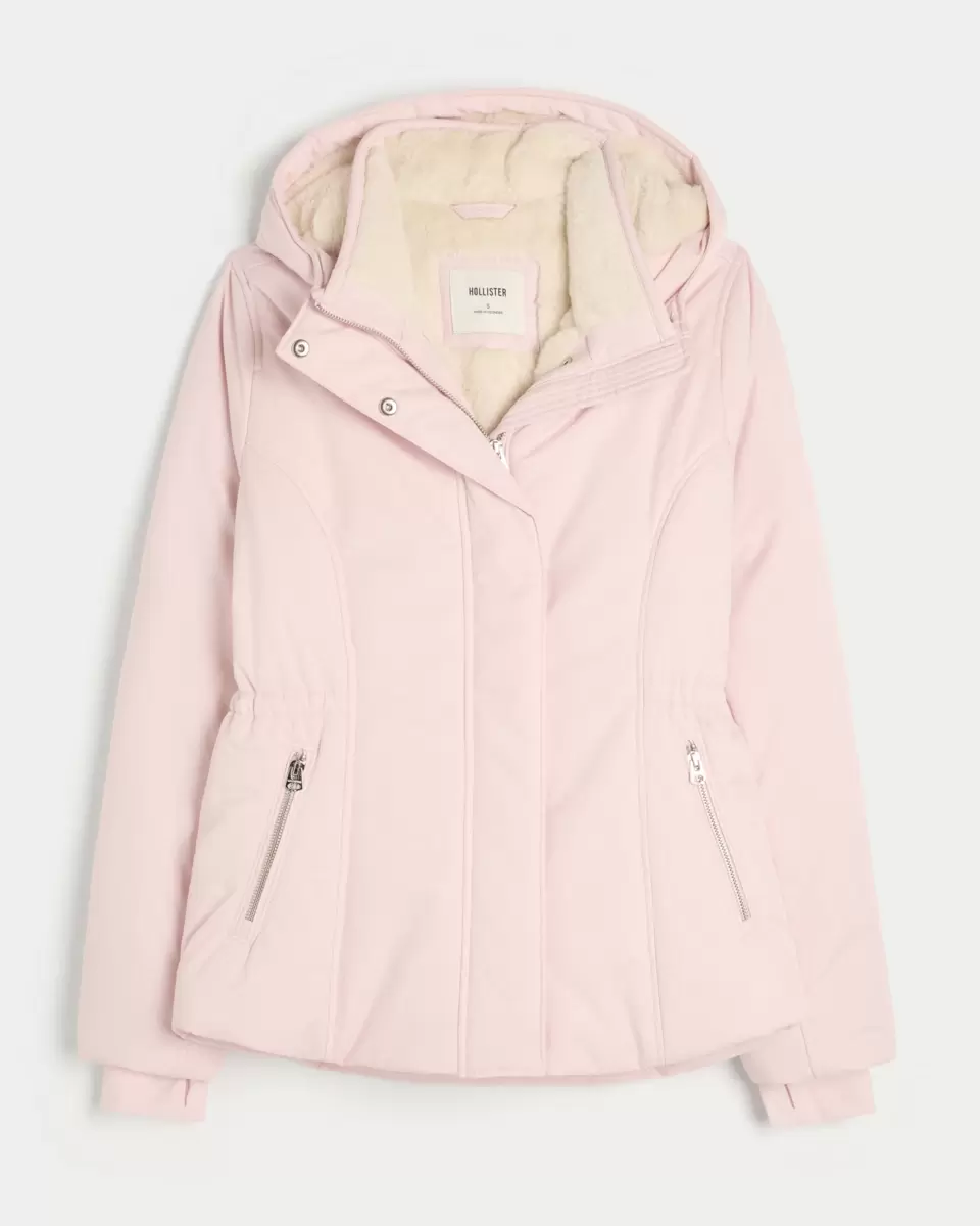 This super comfortable jacket features cozy faux fur lining, a full zipper closure with snaps and a faux fur-lined hood. Front zipper pockets, storm cuffs with thumb openings.