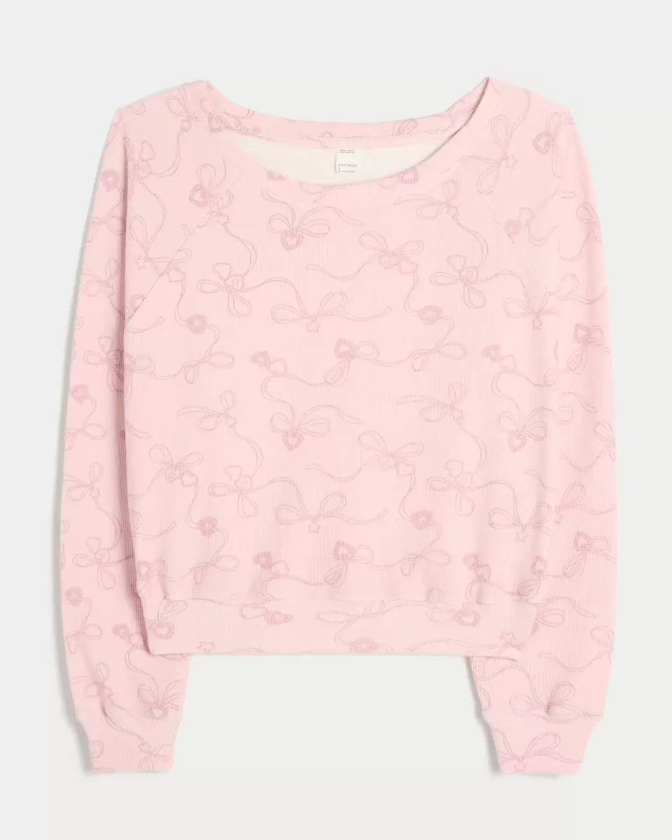 A cozy and super soft long-sleeve top in waffle fabric with a relaxed off-the-shoulder neckline. Banded hems.