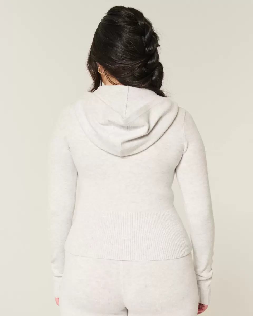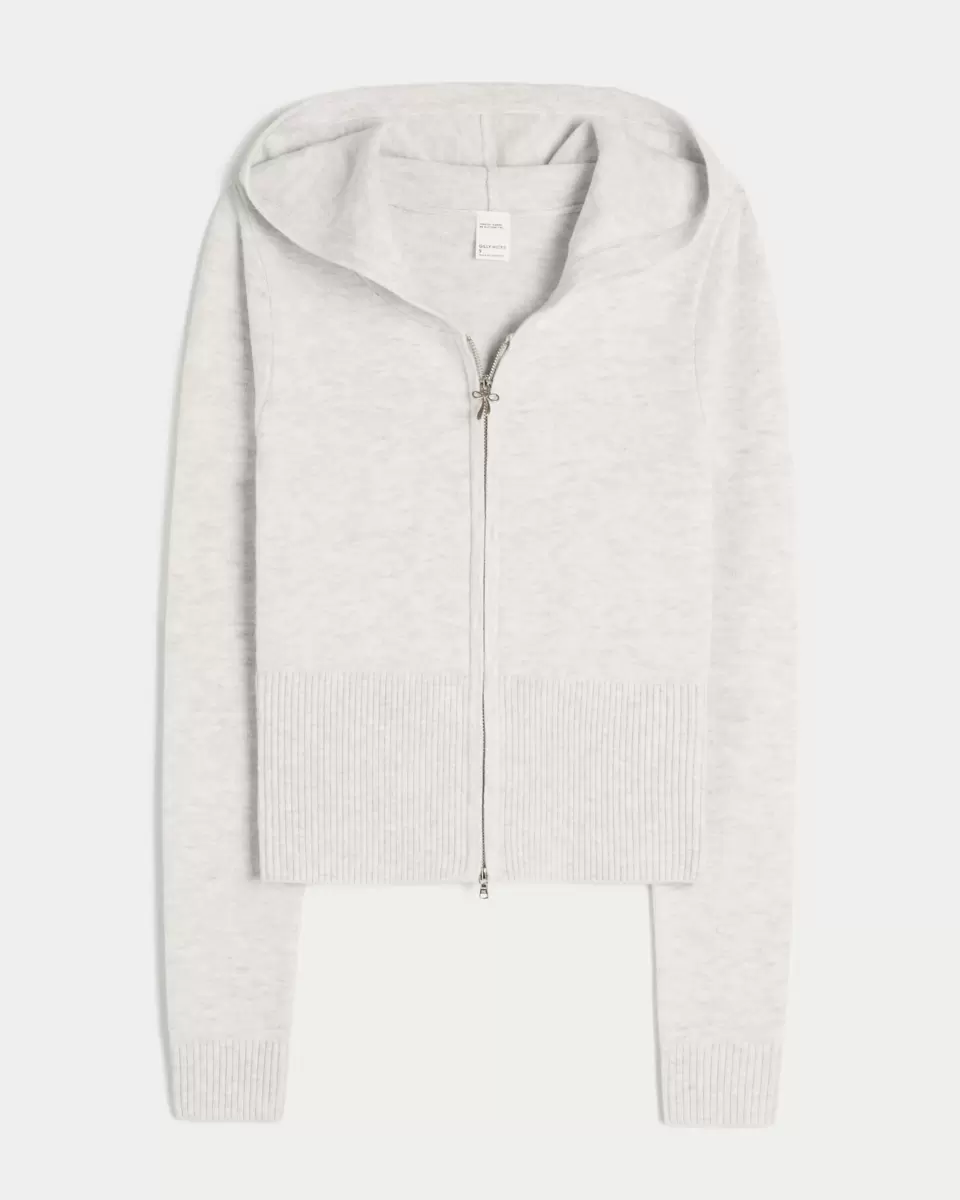 A cozy and super soft sweater hoodie with a dual zipper closure and long sleeves. Ribbed trims. Imported.