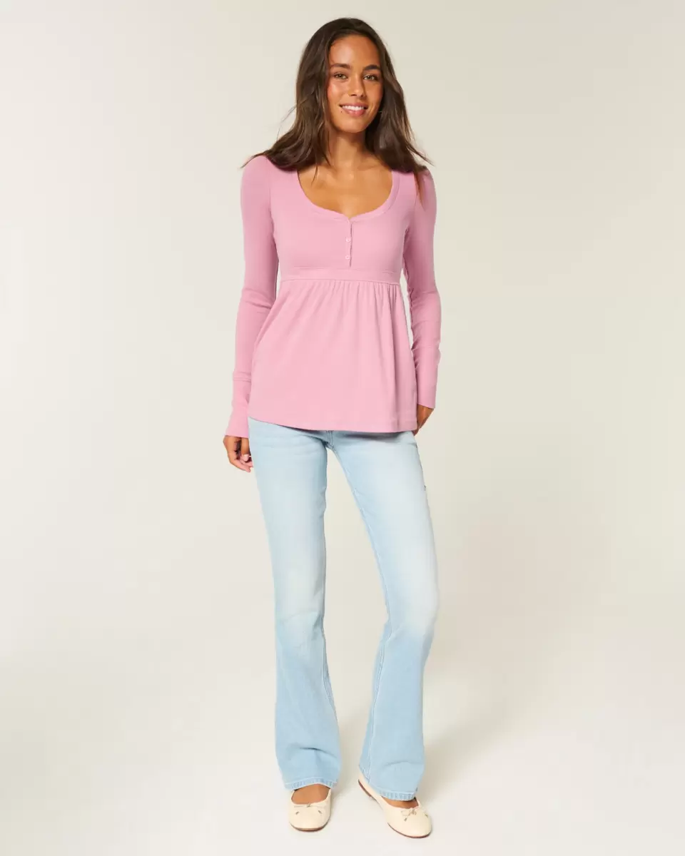 Tie-Back Henley Babydoll Top