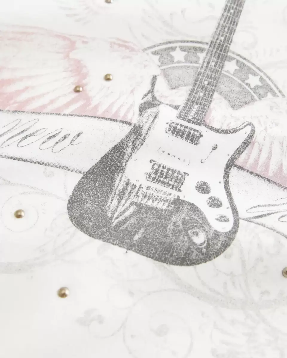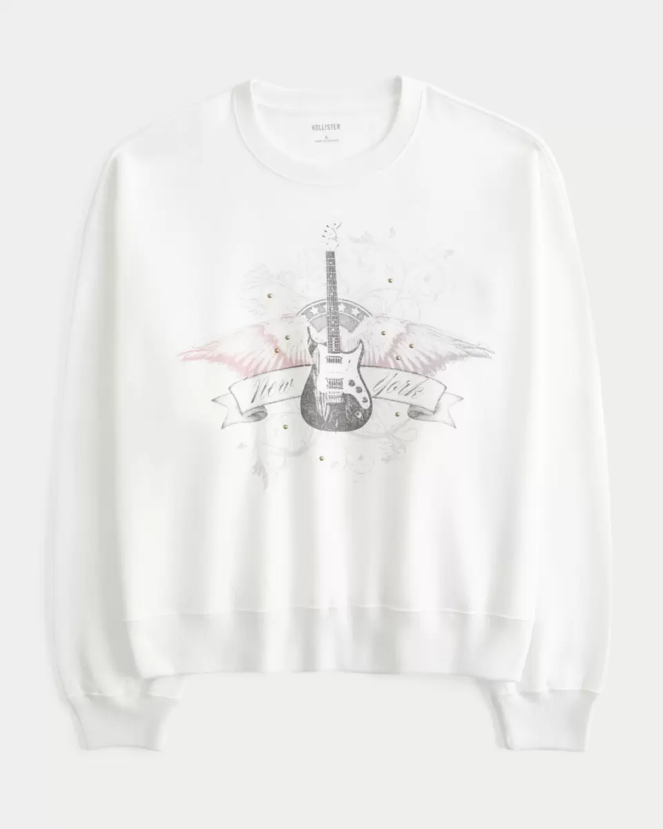 This super soft fleece sweatshirt features New York guitar print graphics and stud details. Crew neckline, long sleeves. Easy Fit. Imported.