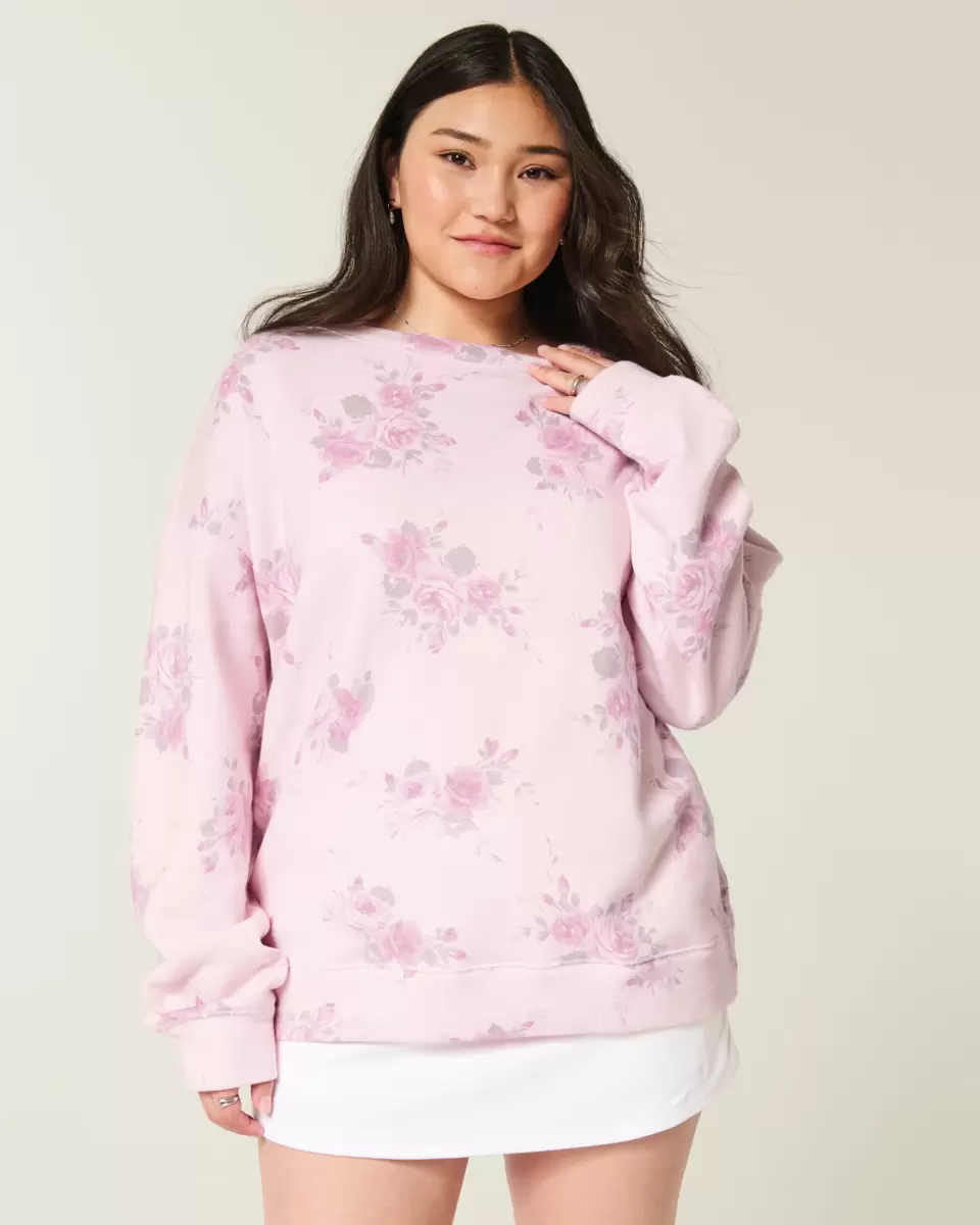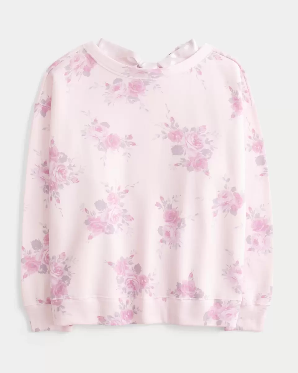 Cozy and super soft, this sweatshirt features a pretty back bow detail. Longer length, long sleeves. Oversized Fit. Imported.