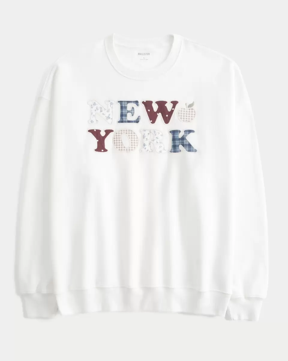 A comfy and super soft fleece sweatshirt featuring pattern-filled New York graphic applique. Crew neckline, short sleeves. Oversized Fit. Imported.