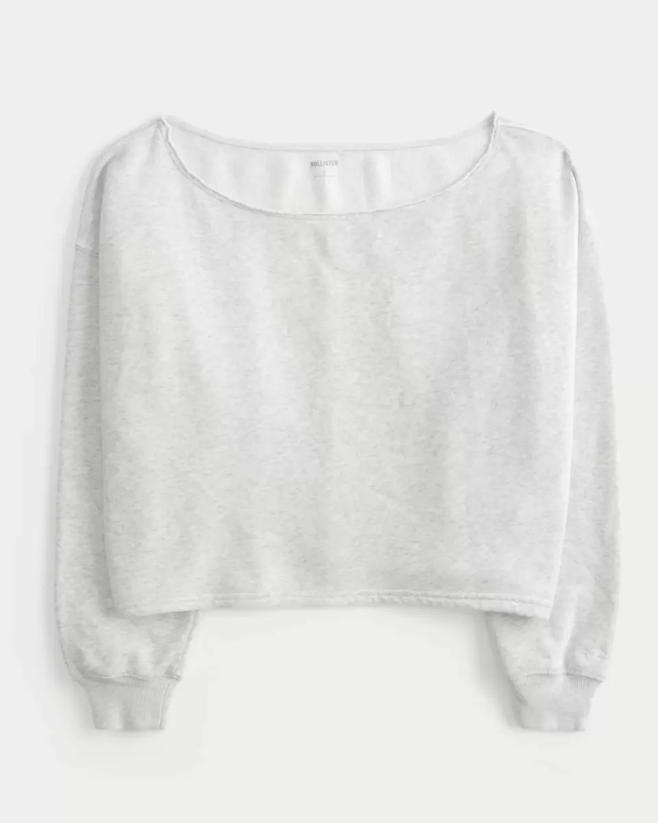 This super soft fleece sweatshirt has a relaxed neckline that can be worn off both shoulders. Long sleeves. Easy Fit.