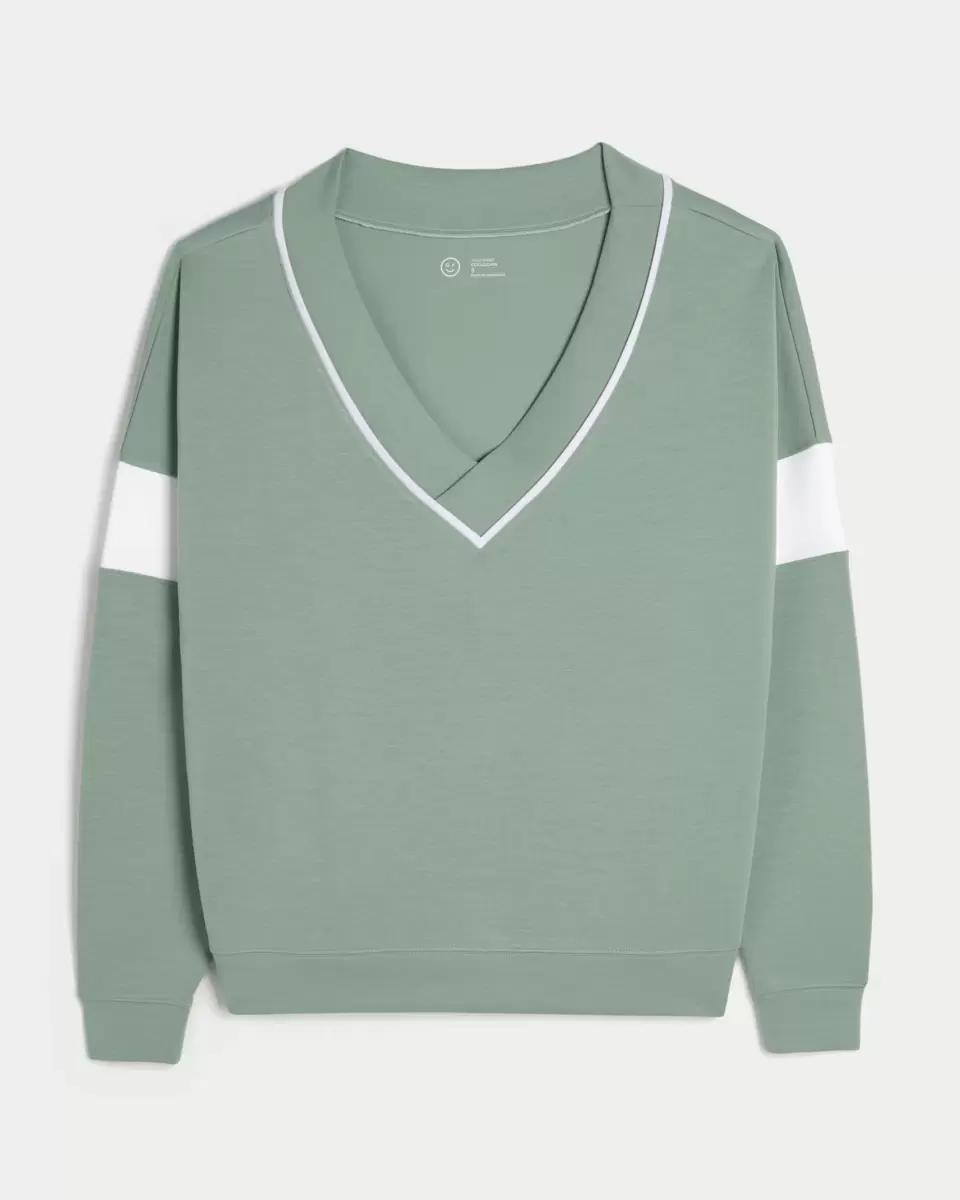 An unbelievably cute and comfy long-sleeve top made with our super soft Cooldown fabric. Off-the-shoulder v-neckline.