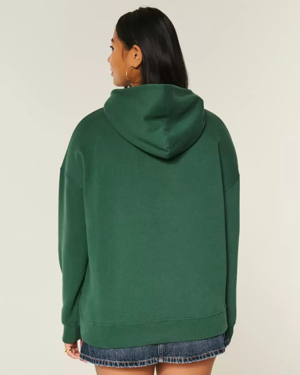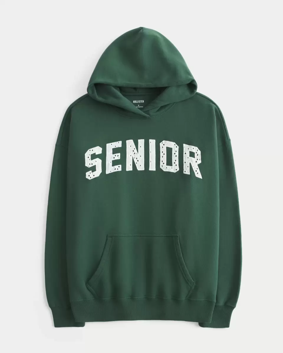 A super soft fleece hoodie featuring eyelet-detailed Senior graphic applique. Hood, front pouch pocket, long sleeves. Oversized Fit. Imported.