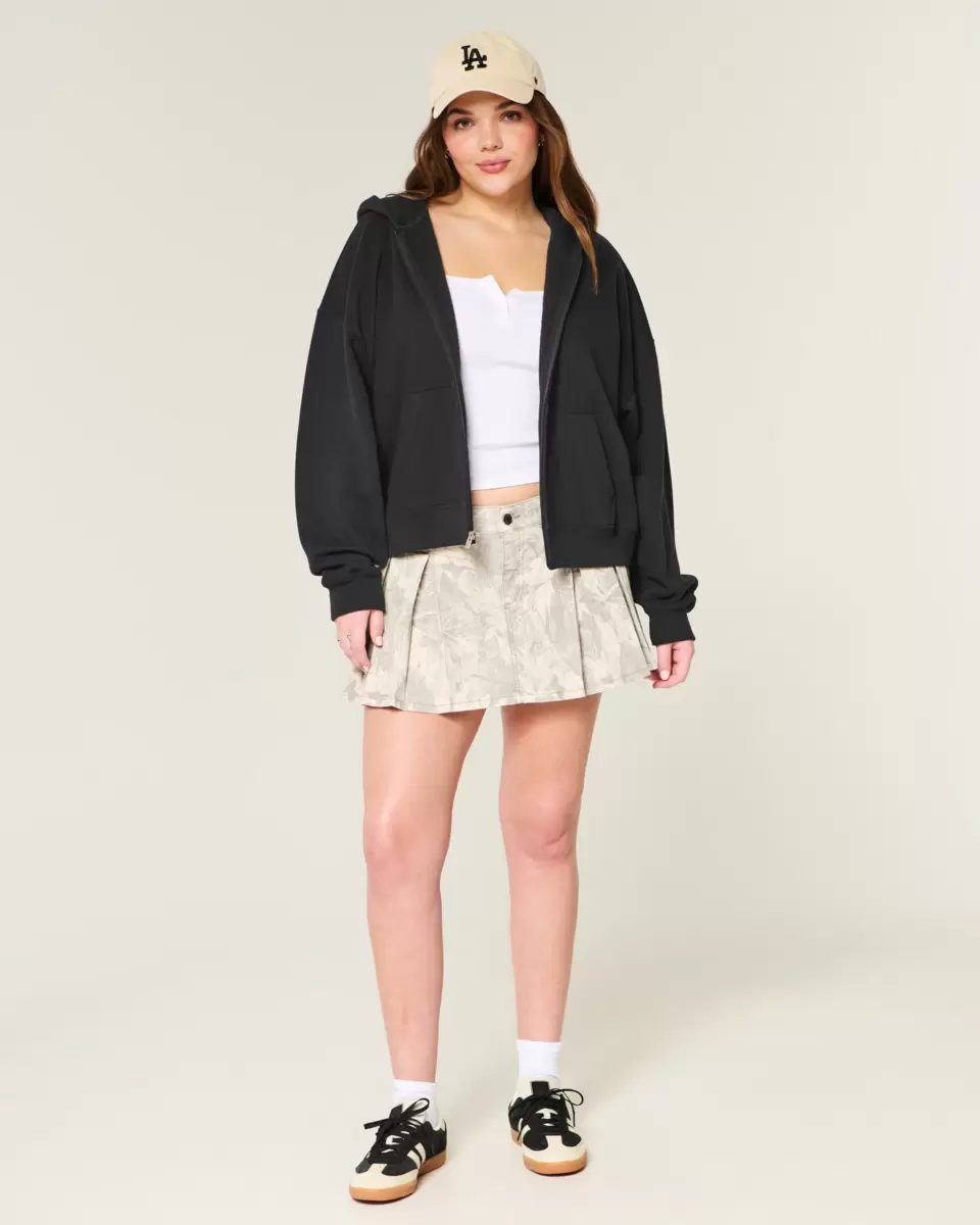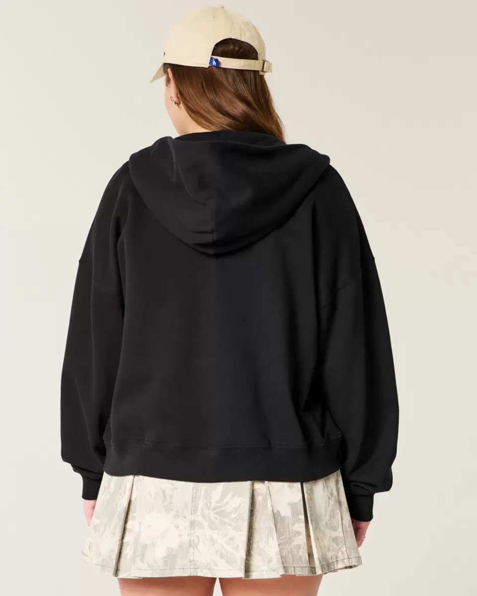 A super soft fleece hoodie with a zip-up closure, front pockets and long sleeves. Hood. Oversized Fit. Imported.