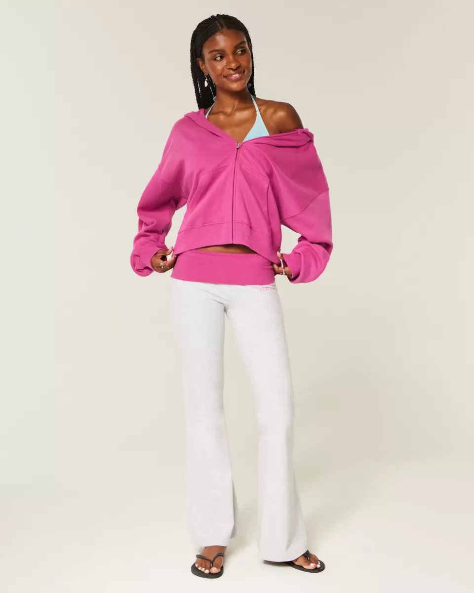 This super soft fleece hoodie has a full zip-up closure and front pockets. Long sleeves, hood. Oversized Fit. Imported.