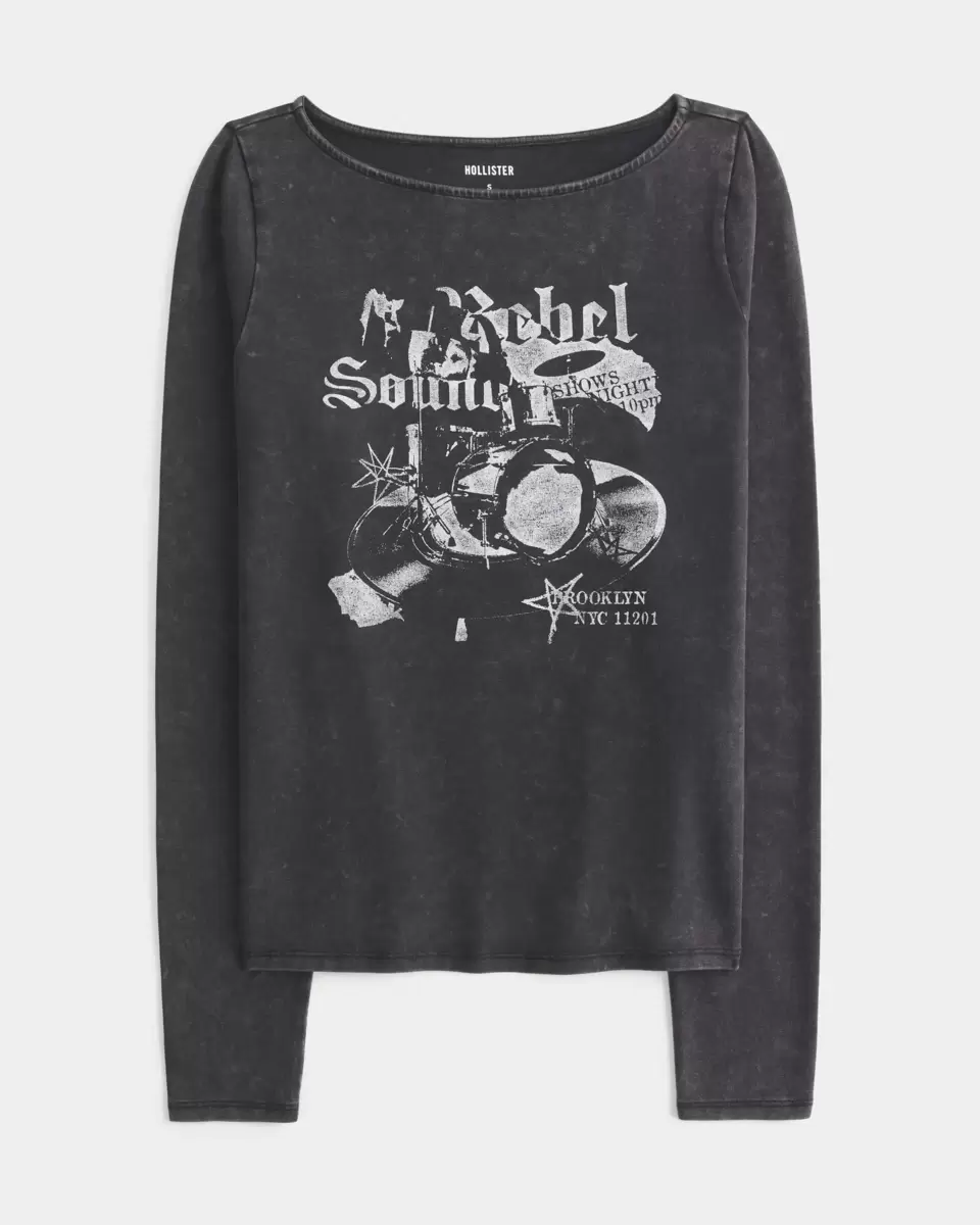 Be the first to review “Brooklyn Music Graphic Slash-Neck Top”