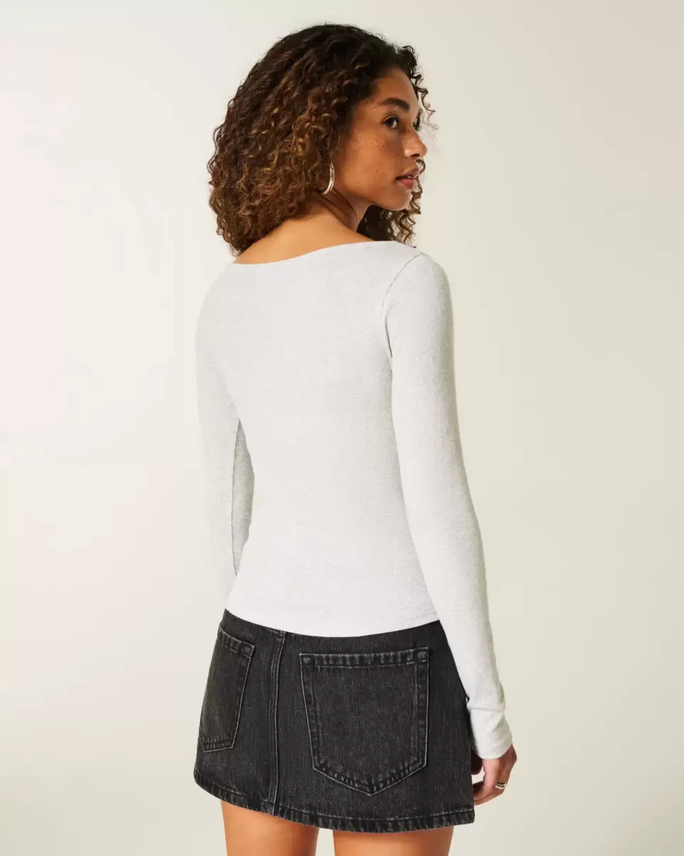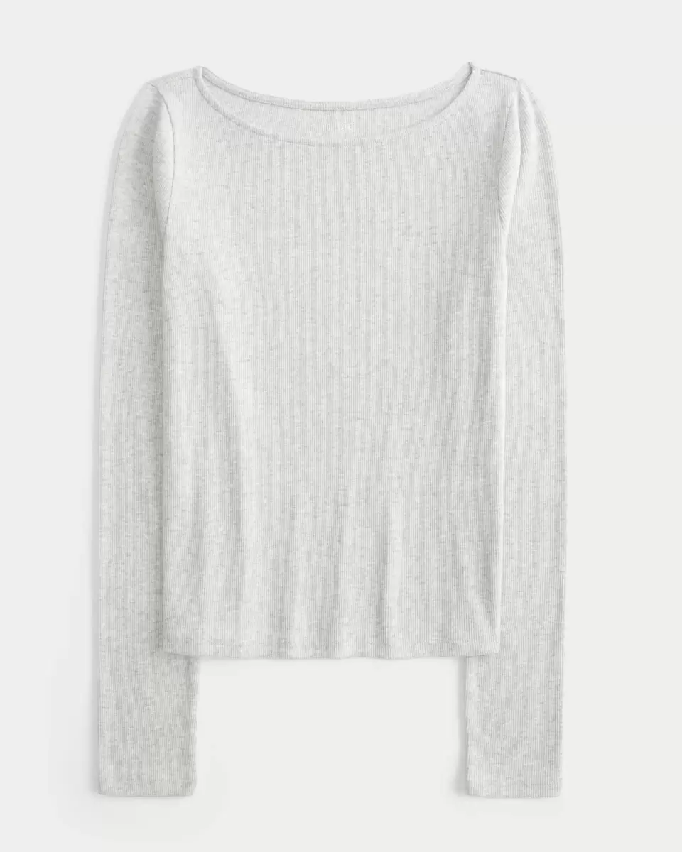 A cozy and super soft long-sleeve top in cotton-blend fabric, featuring a slash neckline. Slim Fit. Imported.