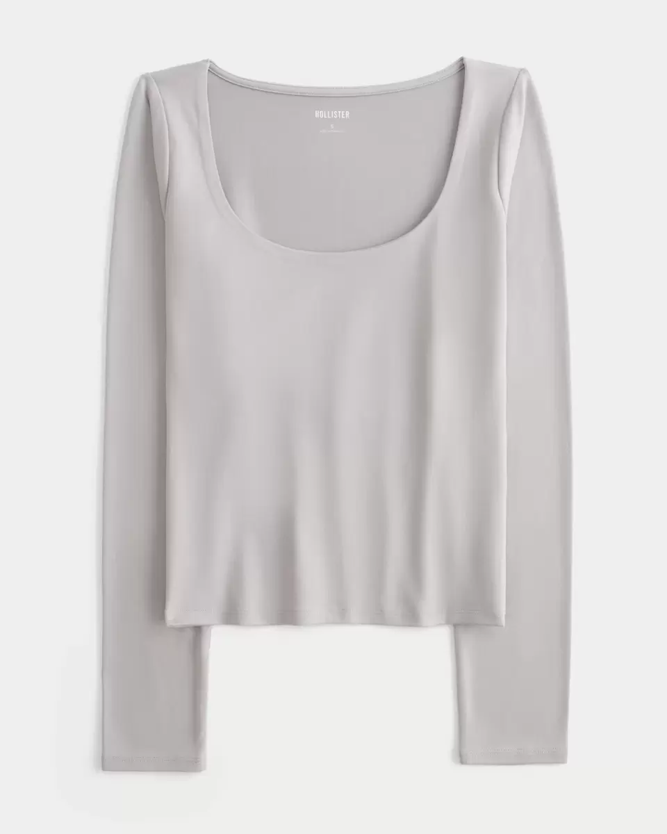 A cute and comfy top in super soft fabric with a seamless look and feel. Scoop neckline, long sleeves. Slim Fit. Imported.