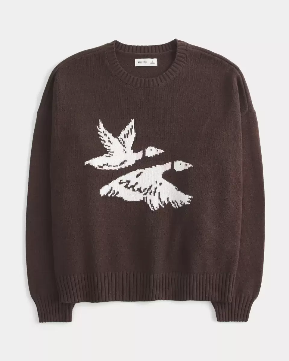 This cozy and super soft sweater features a flying birds intarsia graphic. Crew neckline, long sleeves, ribbed trims. Easy Fit.