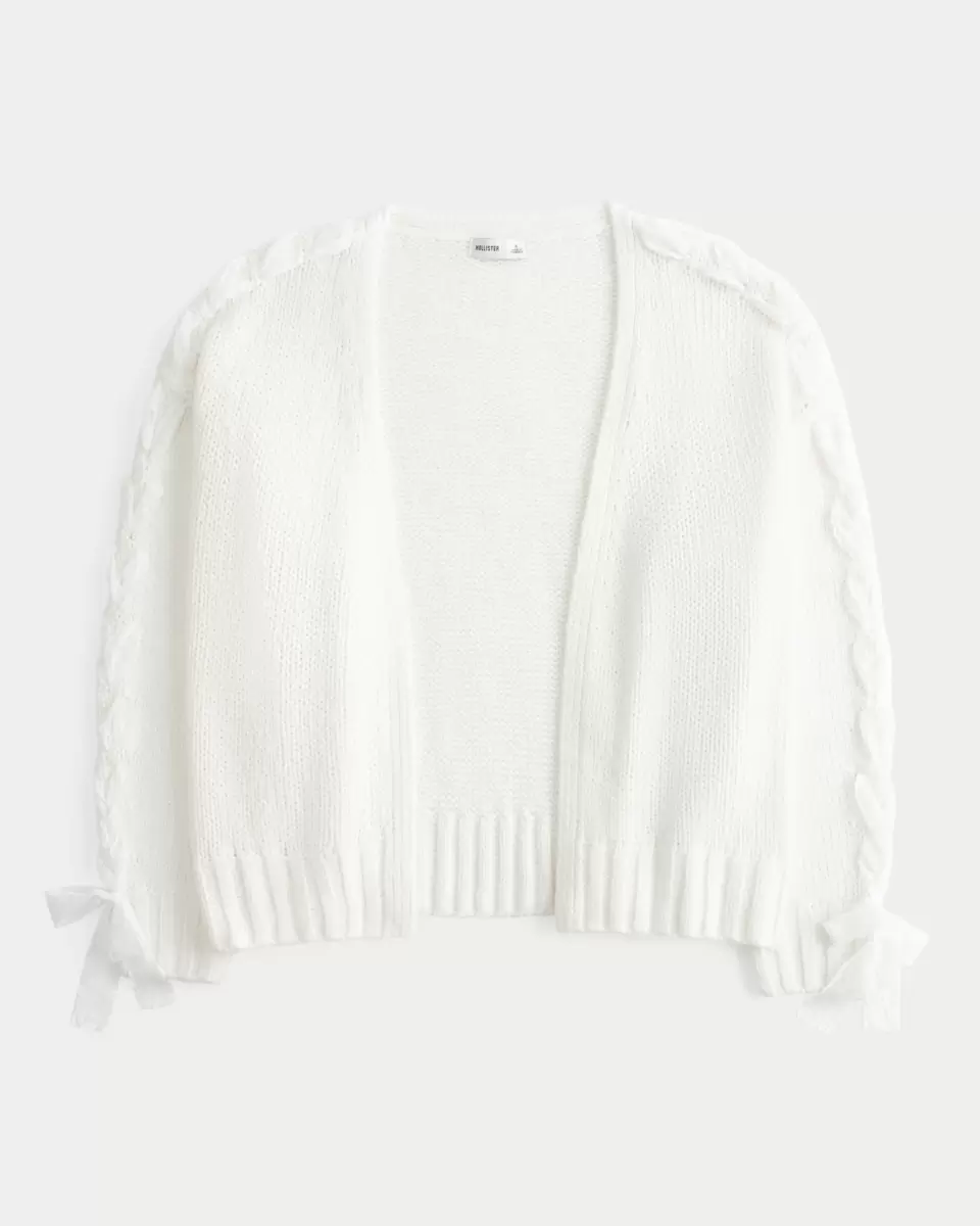 Cozy and super soft, this cardigan features lace detailing along the sleeves. No closure, long sleeves, ribbed trims. Easy Fit. Imported.