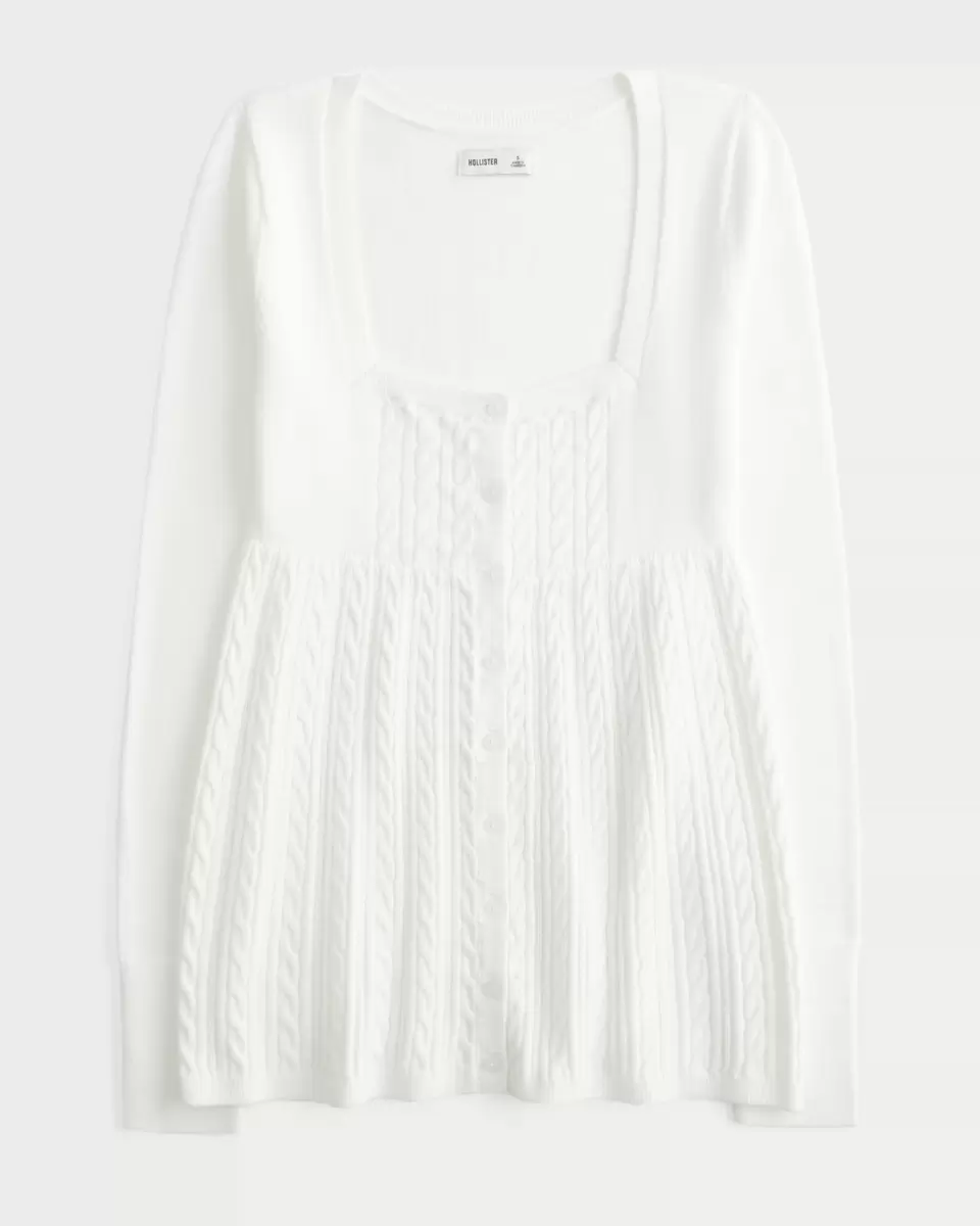 Perfect for layering with a cami or on its own, this long-sleeve sweater is designed with a square neckline and cute Y2K-inspired babydoll silhouette. Front button closure, cable-knit patterns, longer length. Easy Fit. Imported.