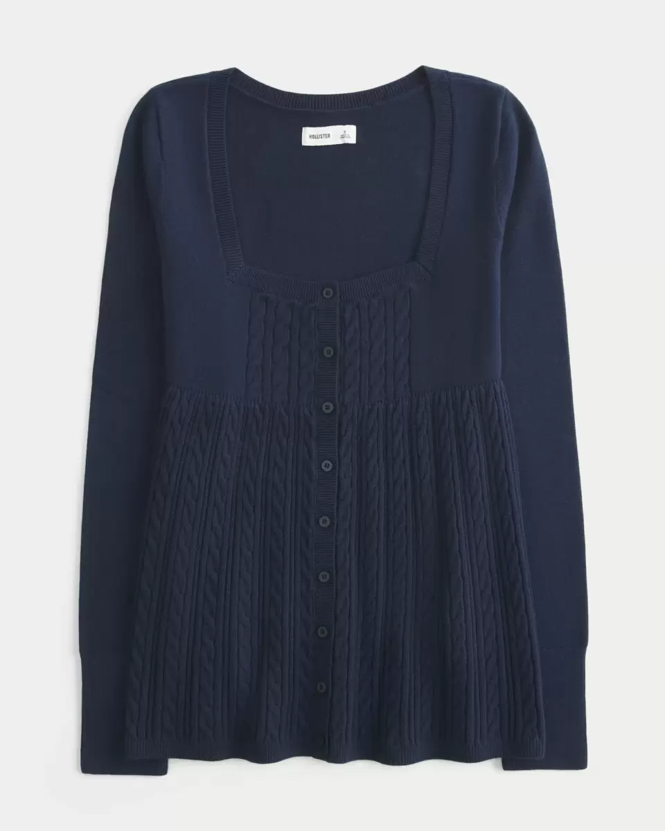 Perfect for layering with a cami or on its own, this long-sleeve sweater is designed with a square neckline and cute Y2K-inspired babydoll silhouette. Front button closure, cable-k