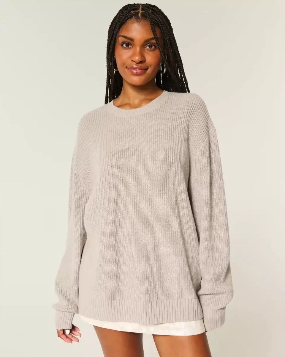 A super soft sweater with cozy texture, designed with a crew neckline and long sleeves. Ribbed trims. Oversized Fit. Imported.